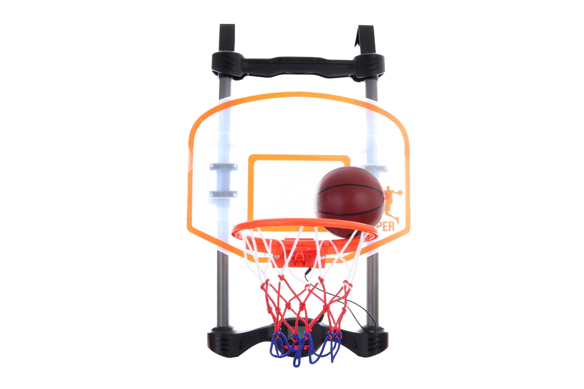 Basketbalový koš se zavěšením na dveře. Obsahuje počítadlo na baterie (3x AAA baterie - nejsou součástí balení). Počítadlo vydává zvuky a melodie - lze na něm nastavit čas. Pro 1-2 hráče. Rozměry balení cca 58 x 35 x 10 cm. Rozměry koše cca 43 x 33 cm. Součástí je také míč a pumpička. Věk 3+