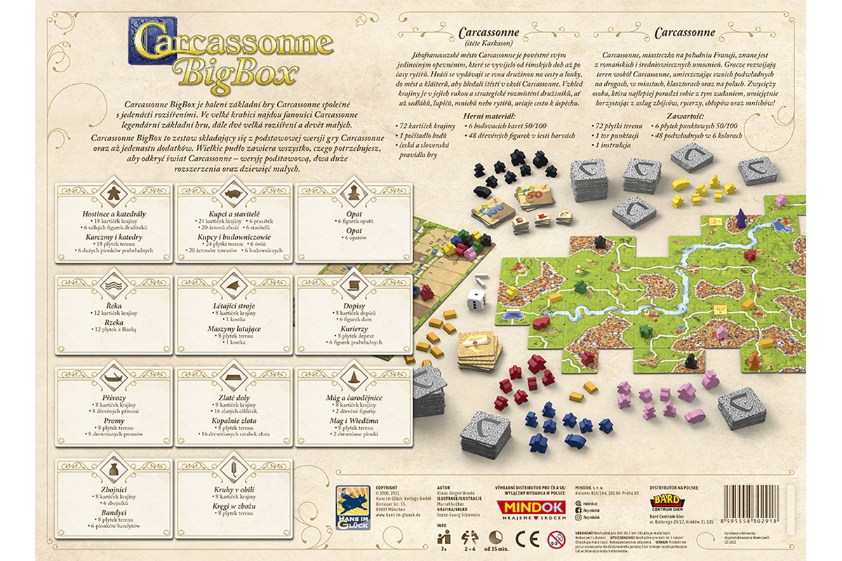 Carcassonne Big Box je balení základní hry Carcassonne společně s jedenácti rošířeními. Ve velké krabici najdou fanoušci Carcassonne legendární základ..