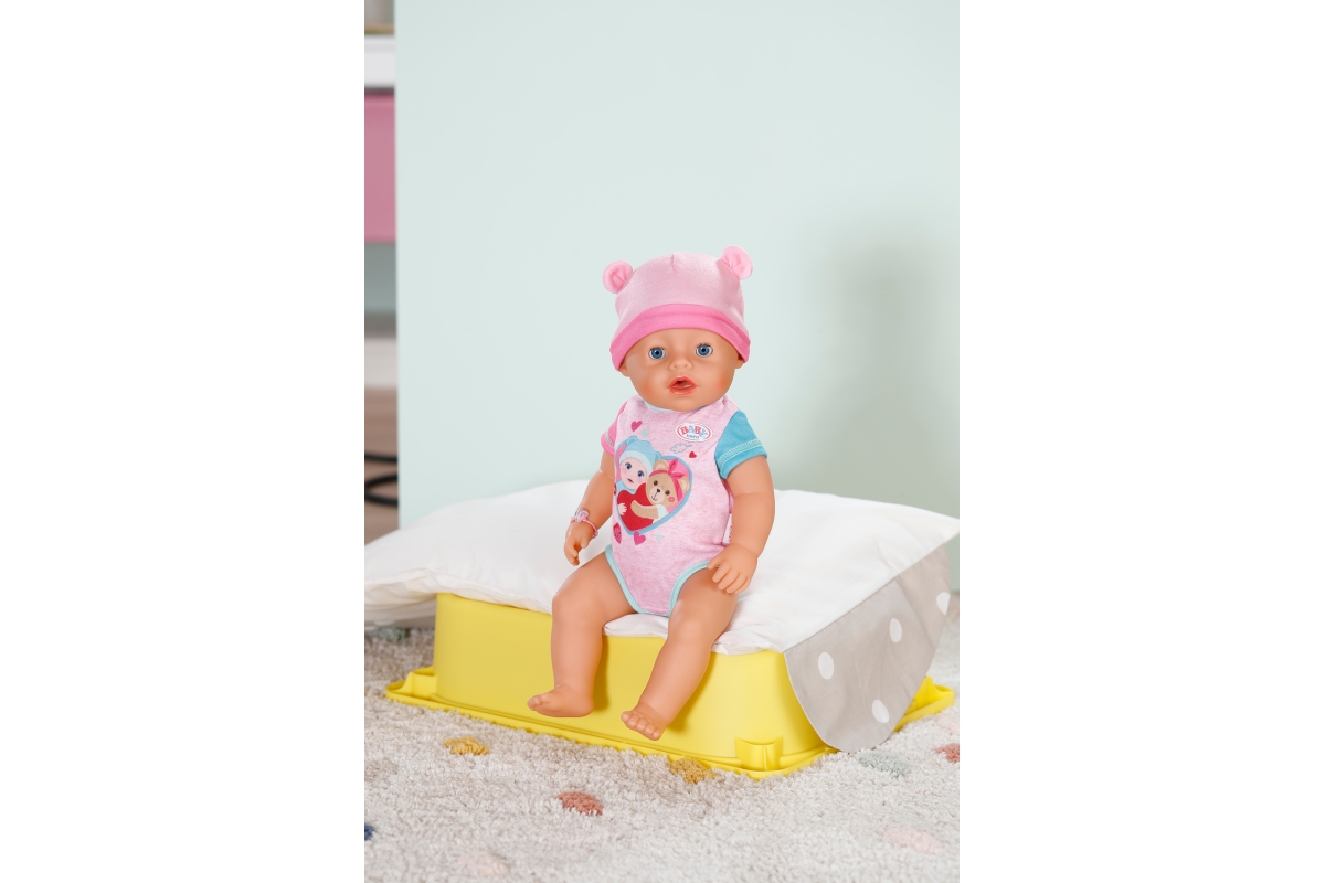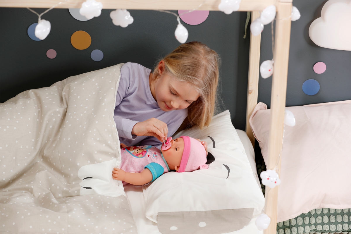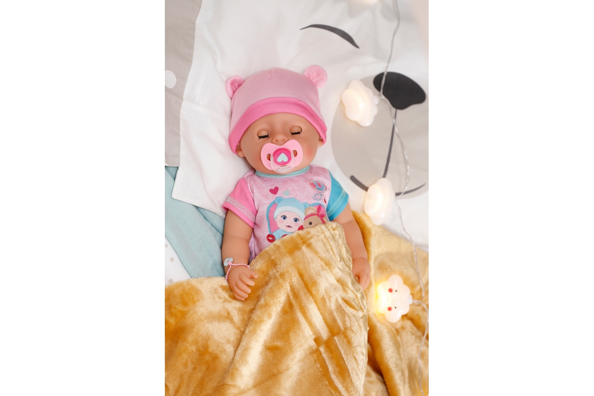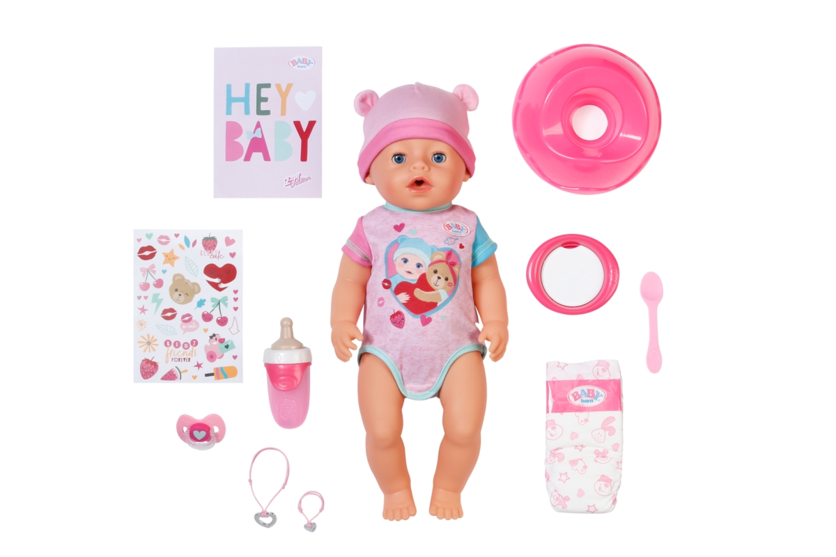 Představujeme Emmu! Panenku Emmu, známou z animovaného seriálu BABY born, na který se můžete podívat na našem kanále na YouTube, můžete mít nyní i doma. V novém oblečku a s 10 doplňky. Umí pít vodu, zavírat oči, ronit slzy, čůrat do plenky a může se koupat. Má kouzelný talířek, ve kterém se při kontaktu s vodou objeví její oblíbené jídlo. I v nočníku se kouzelně objeví kakání a čůrání. Otáčením dudlíku zavírá a otevírá oči. Má 10 doplňků. Věk 3+