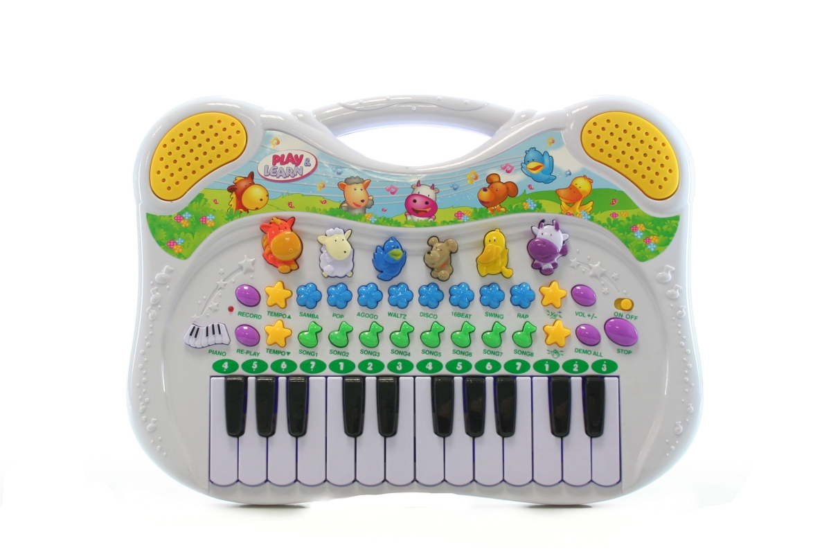 Různé rytmy,melodie a zvuky jsou pro děti zábavou při přehrávání vlastních hudebních kousků.Hranou hudbu lze nahrát a poté opět přehrávat.Velikost cca..