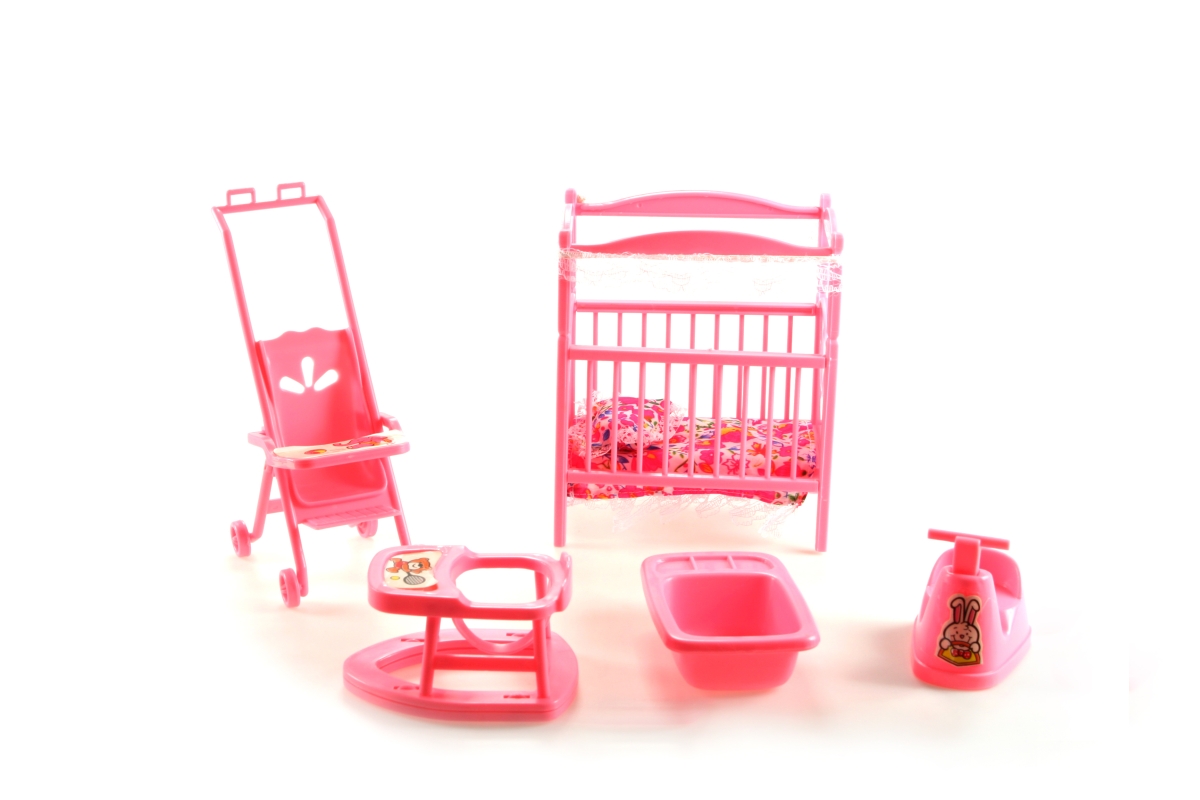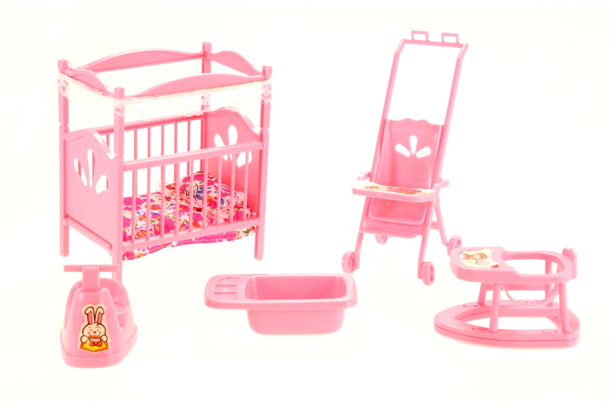 Glorie Dětský pokojík obsahuje plastovou postýlku o rozměrechcca 13,5 cm X 9 cm X 15 cm s peřinkou a polštářkem pro miminko,plastový kočárek o výšce c..