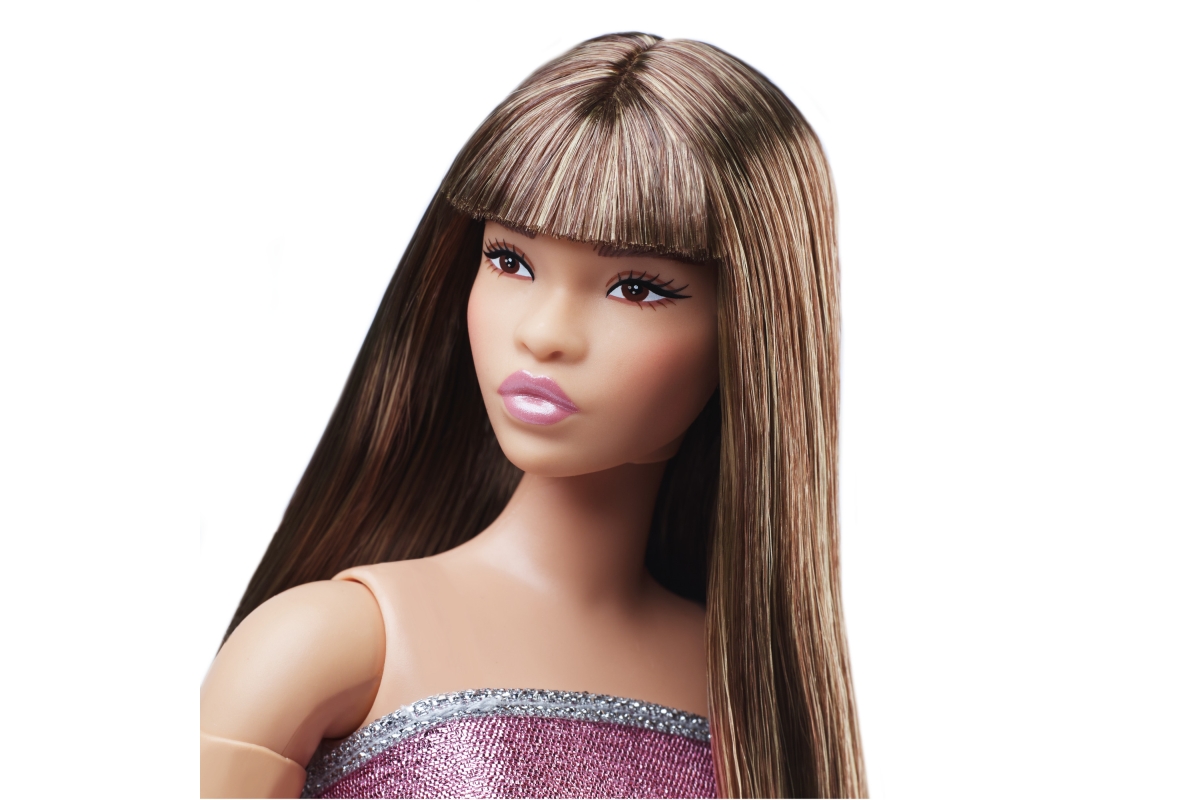 Panenka Barbie® Looks™ Brunetka v růžových mini šatech. Tato módní panenka je vždy připravena na fotografování a inspiruje stylistku, která se v dětech skrývá. Nejnovější řada je plná pastelových a metalických barev a inspiruje se stylem 90. let. Tato polohovatelná panenka Barbie® Looks™ má tupě střiženou ofinu a na sobě má lesklé šaty bez ramínek.