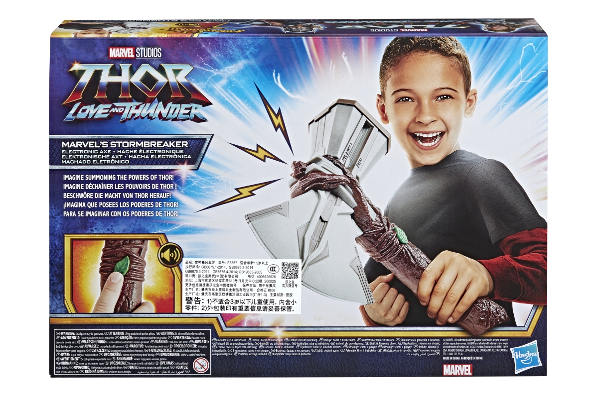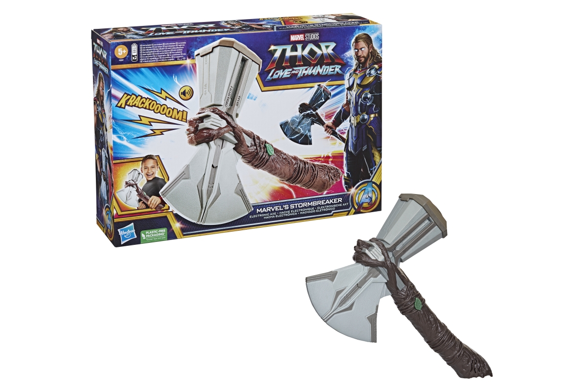 Jak je již známo Thor přišel o své kladivo, ale byla mu vykována nová mocná zbraň a tou je sekera zvaná Stormbreaker. Sekera vydává zvukové efekty, které se zapínají tlačítkem ve tvaru listu. Sekera je inspirována filmem Thor Love a Thunder. Nová a mocná zbraň oblíbeného hrdiny Thora. Sekera vydává zvuky bouřky a hromů. Napájení na 2 AAA baterie (jsou součástí balení). Vyrobeno z kvalitního plastu. Věk 5+