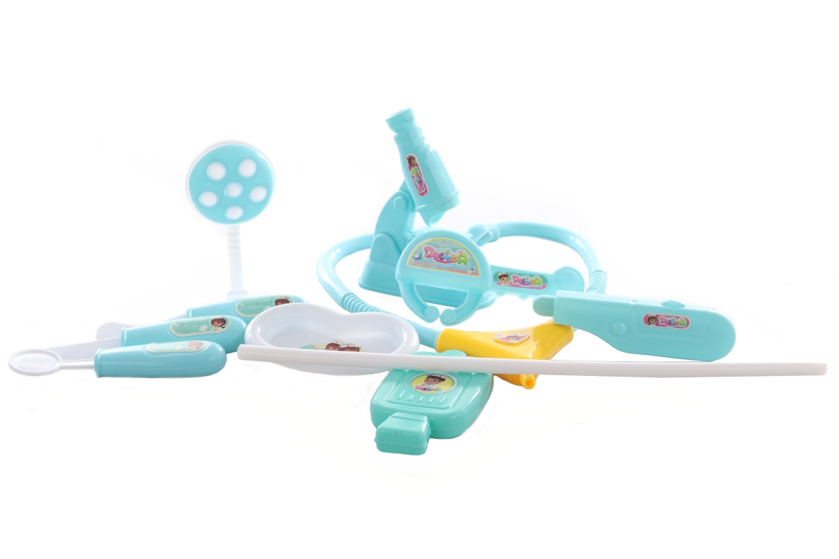 Doktorská sada obsahuje stetostkop, brýle, kartáček, vrtačku, mikroskop a další doplňky. Napájení stetoskopu na 3 AG13 baterie (jsou součástí). Rozměr..