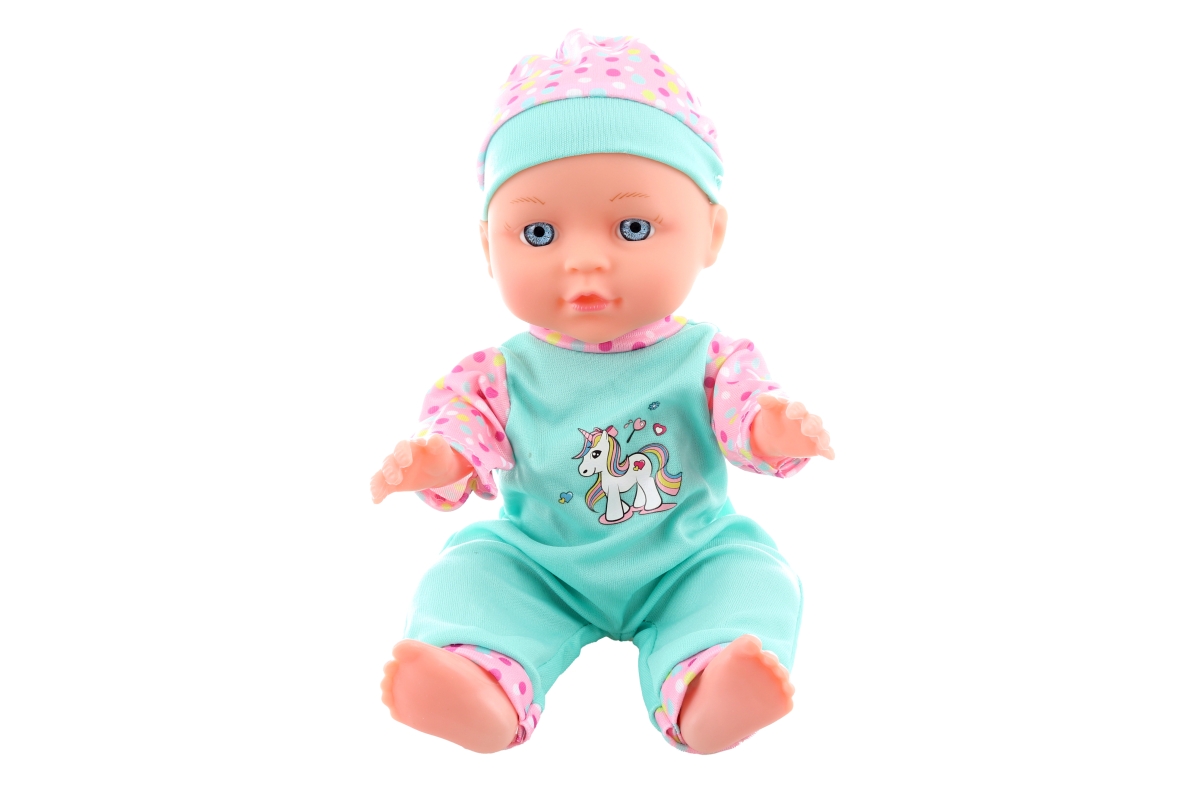Miminko o velikosti 27 cm v oblečku s jednorožcem. Součástí balení je stetoskop a injekce. Materiál plast. Miminko má pohyblivé ruce, nohy i hlavičku...