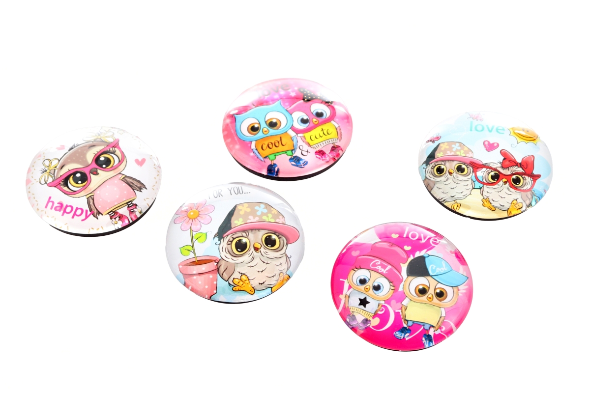 Magnetky s motivem soviček. Průměr magnetu 4 cm.. Materiál plast. Výrobek je určený k dekorativním účelům. Cena za jeden kus...