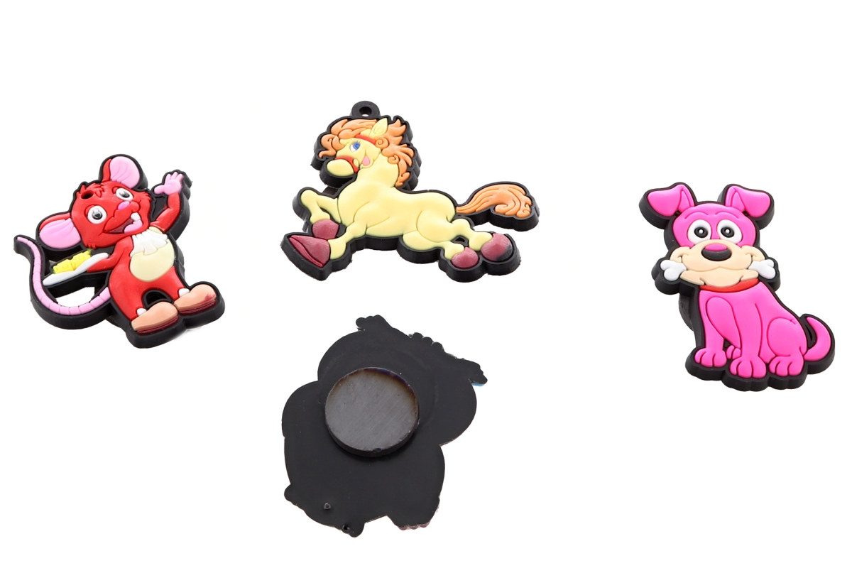 Magnetky s motivem veselých zvířátek. Rozměry magnetu cca 5x5 cm. Materiál měkký plast. Výrobek je určený k dekorativním účelům. Cena za jeden kus...