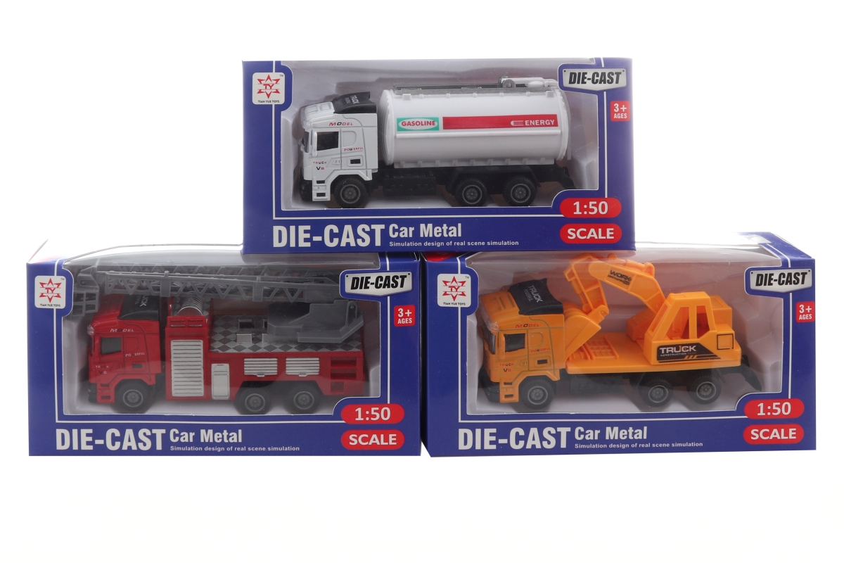 Sada různých druhů kovových aut. V balení 9 ks. Každé auto baleno v krabičce zvlášť.