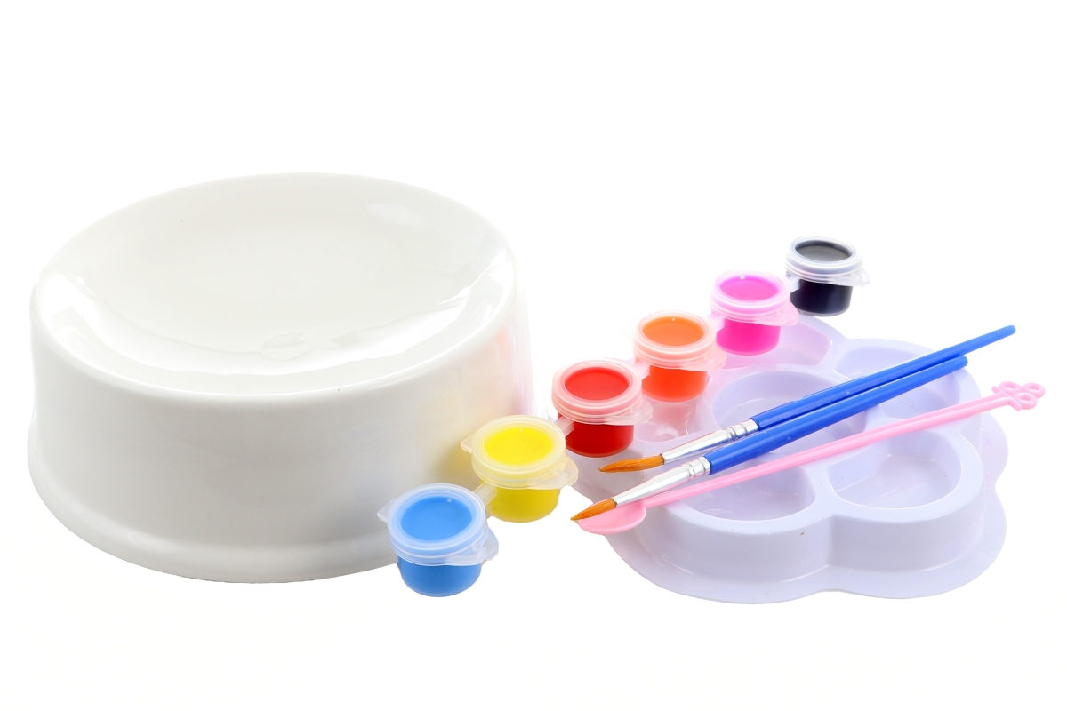 Malovací keramická miska na jídlo pro kočičku. Balení obsahuje misku, 6 barviček, 2 štětečky a paletku. Průměr misky 12 cm. Baleno v krabici. Rozměry ..
