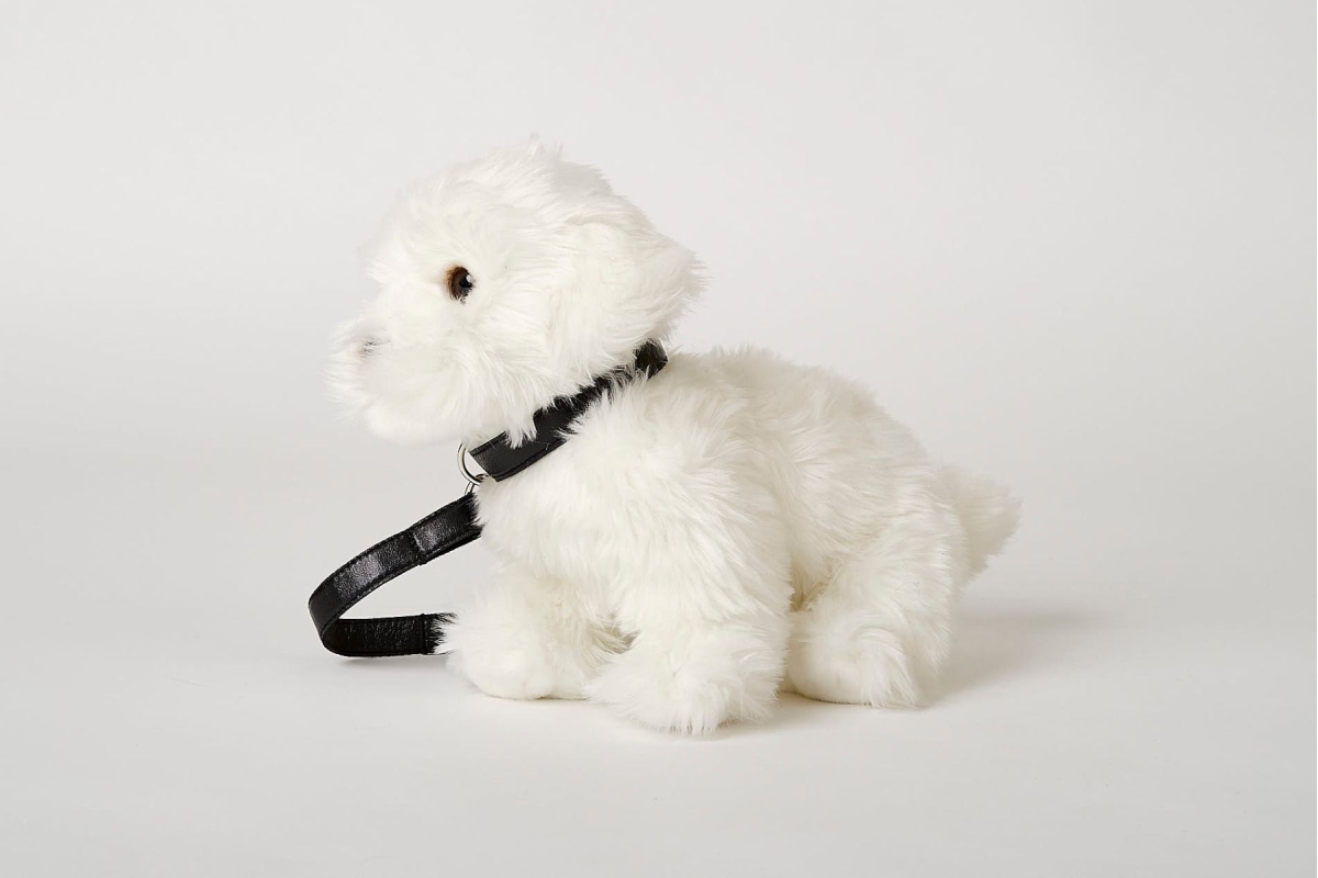 Plyšový pes o velikosti cca 28 x 24 x 15 cm. Součástí je také vodítko o délce cca 22 cm. Věk 0+..