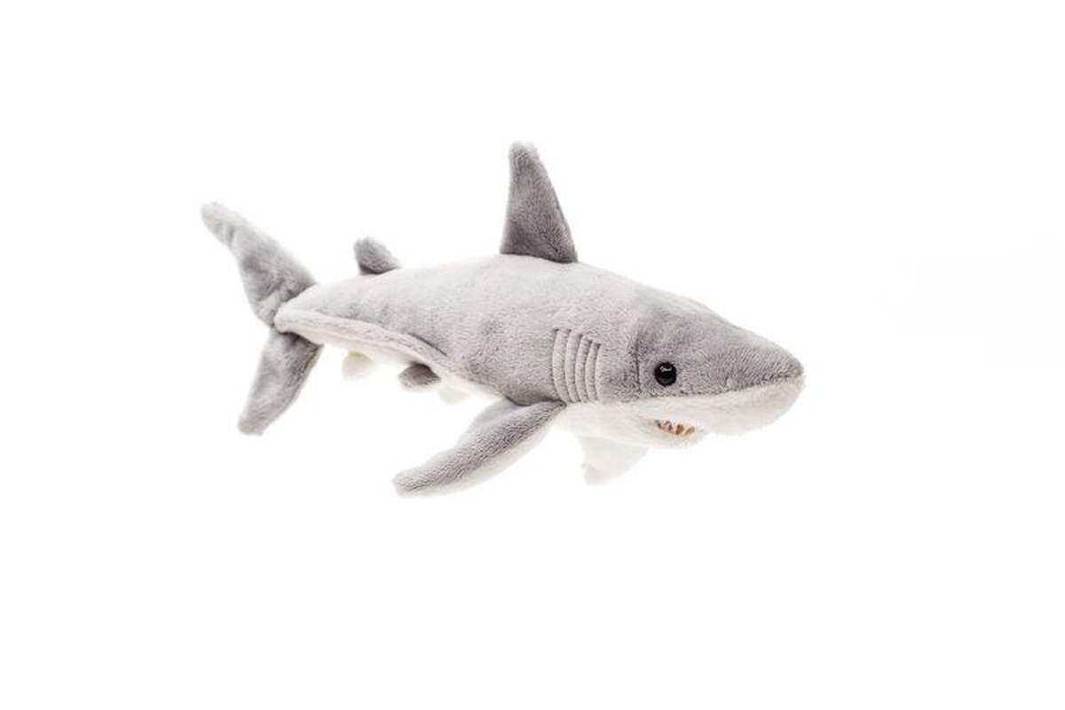 Plyšový žralok o velikosti cca 26 x 8 x 15 cm. Věk 0+..