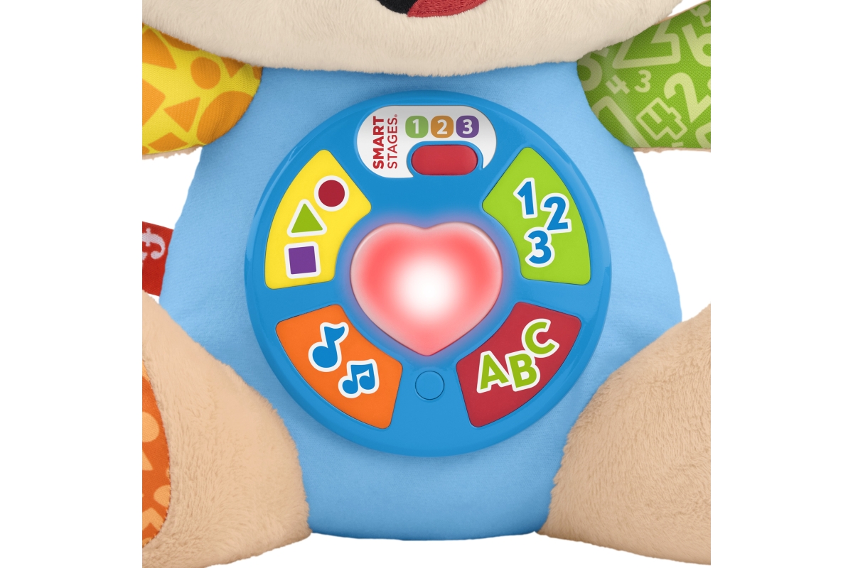 Mluvící pejsek Smart Stages® z řady Fisher-Price® Směj se a Poznávej!® je příjemná plyšová hudební hračka, která seznamuje děťátko s abecedou, tvary, ..
