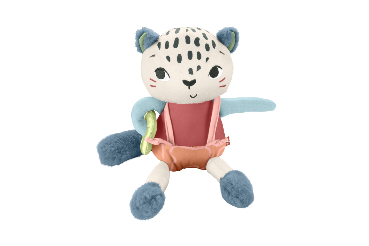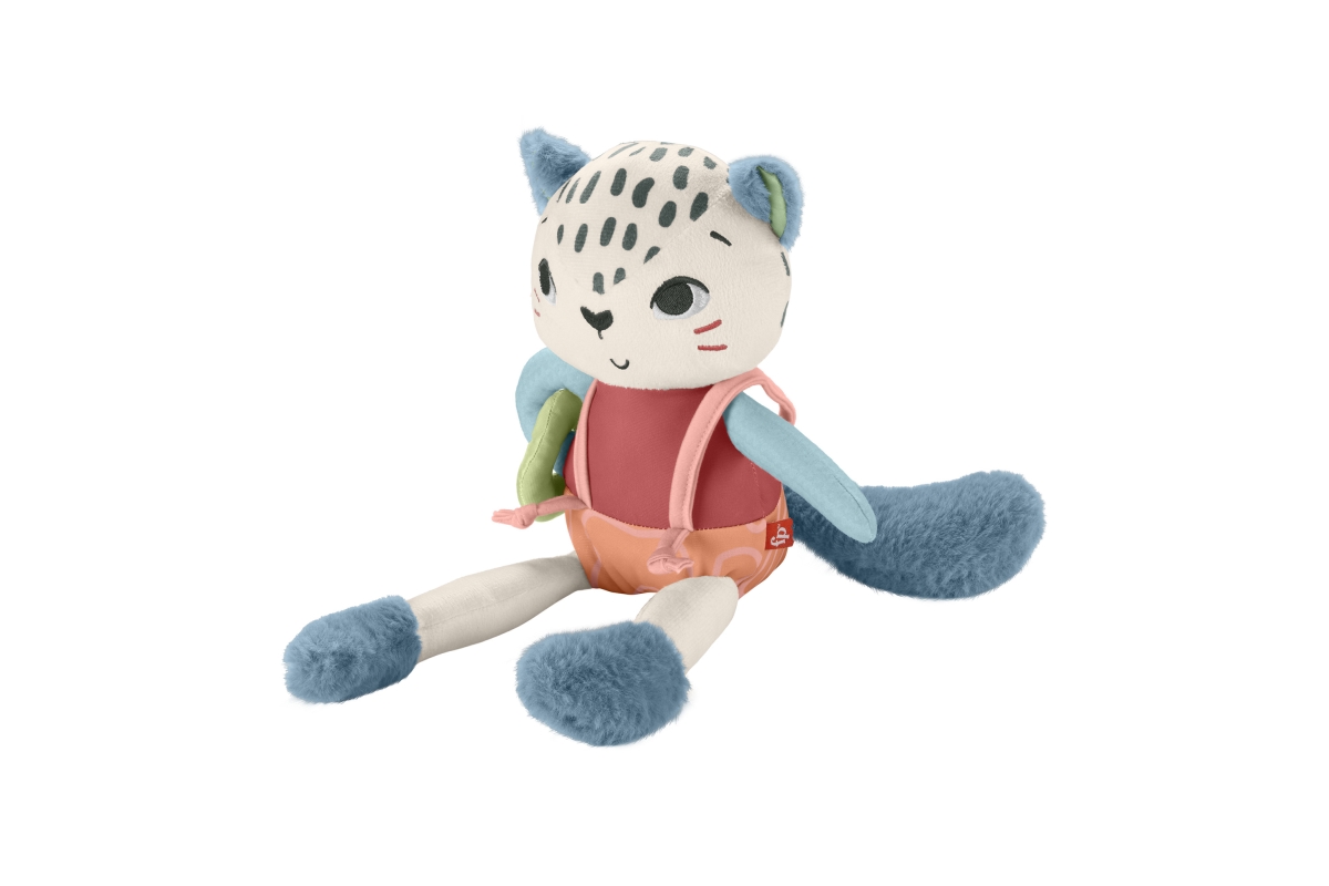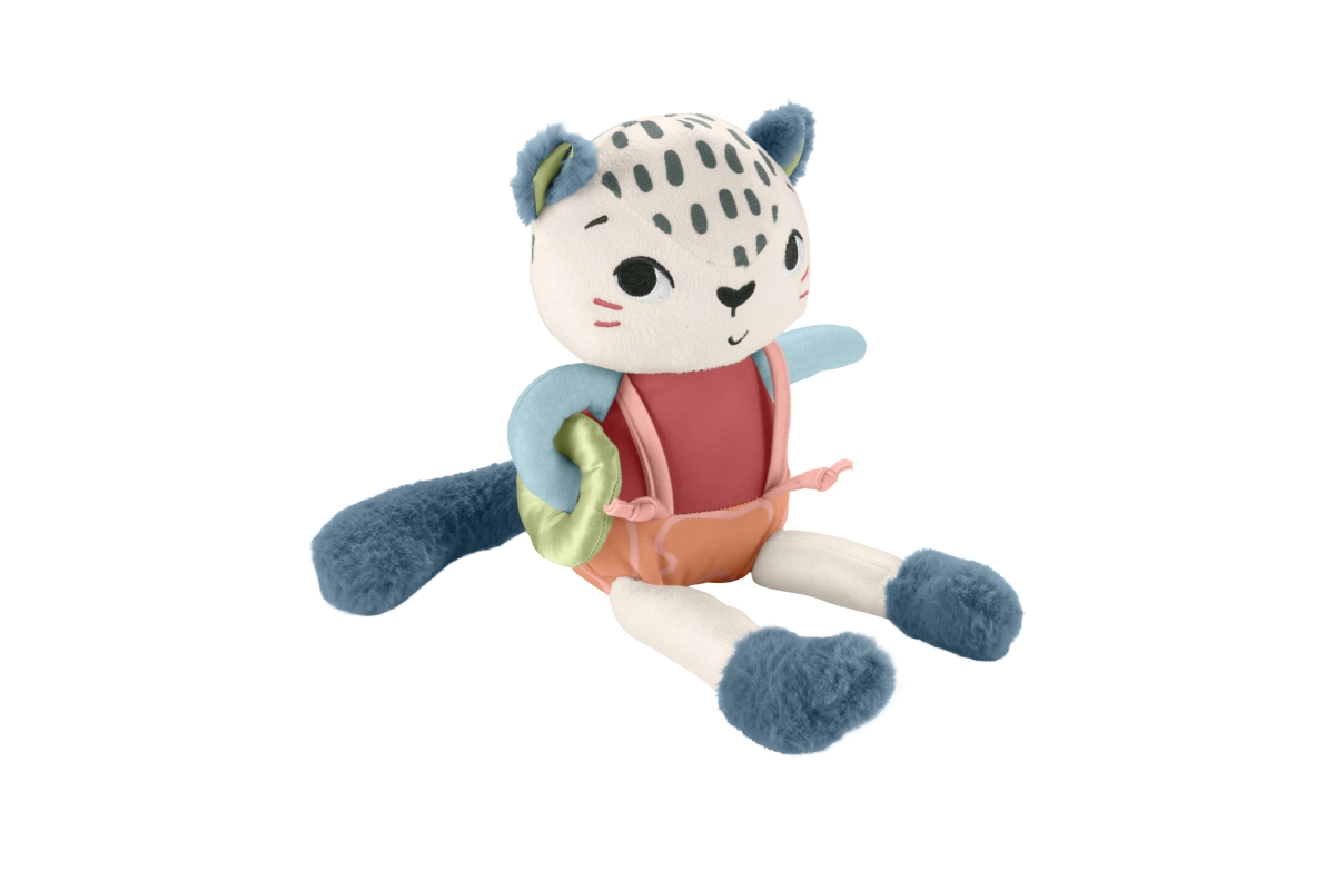 Dětská smyslová hračka Sněžný leopard od Fisher-Price® je inspirovaná zvířaty, na která upozornil Světový fond na ochranu přírody, používá látku vyrob..