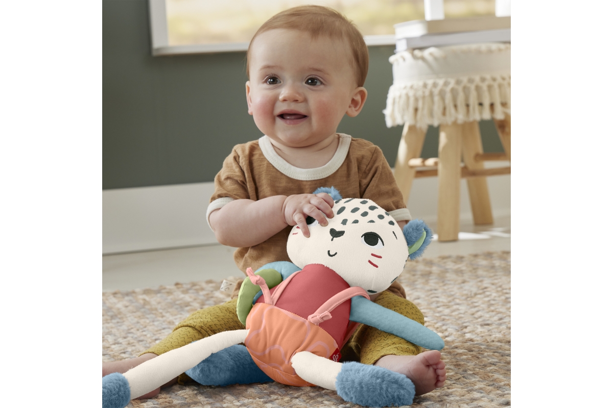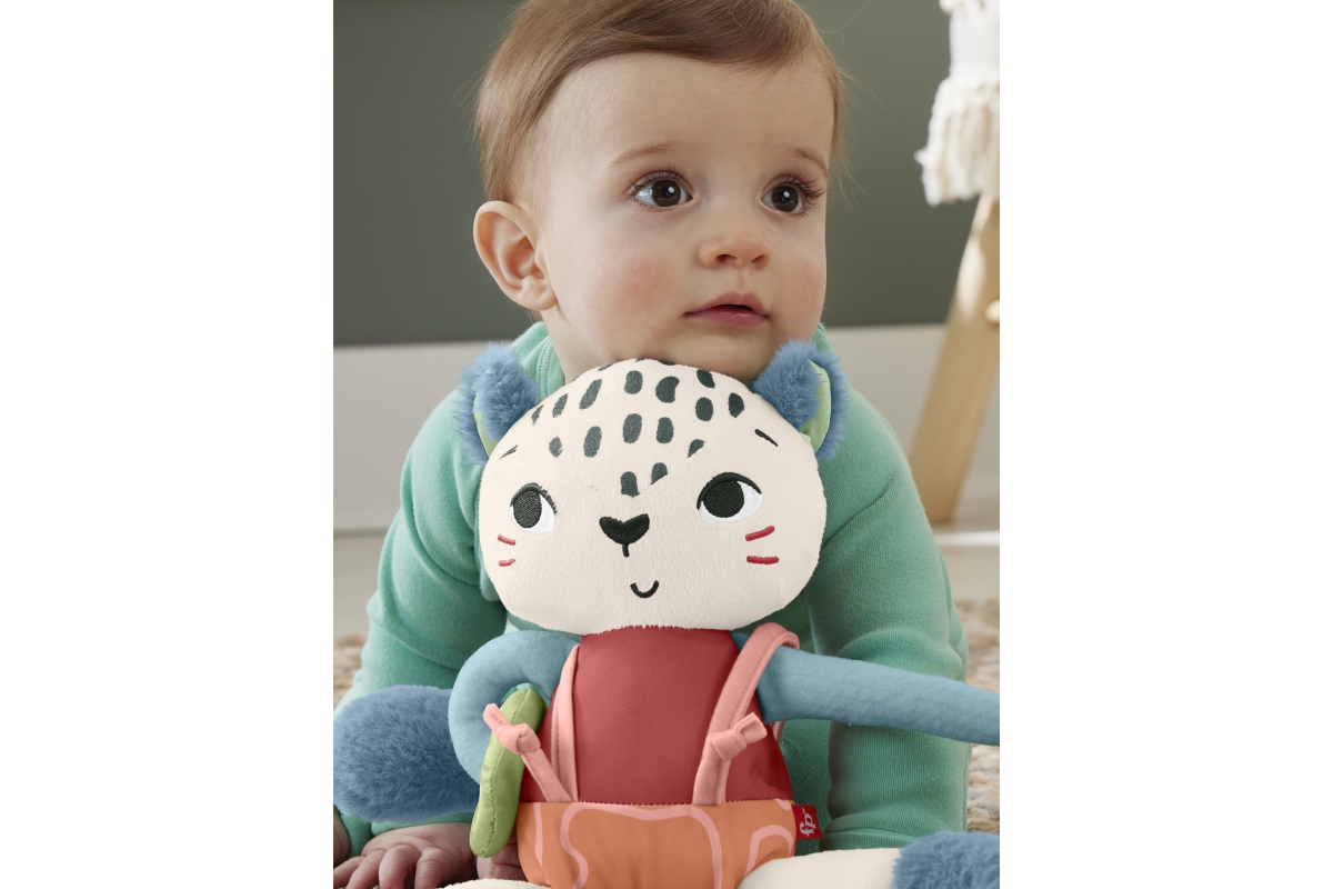 Dětská smyslová hračka Sněžný leopard od Fisher-Price® je inspirovaná zvířaty, na která upozornil Světový fond na ochranu přírody, používá látku vyrobenou z 95 % z recyklovaných plastů a je dodávána v obalu s certifikátem FSC, který podporuje odpovědné lesní hospodářství. Tato plyšová hračka nabízí saténové látky, měkké chlupaté vlnitě botičky a vysoce kontrastní barvy, které rozvíjejí smysly vašeho děťátka. Zábavné aktivity pro rozvoj jemné motoriky zahrnují natahovací nožičky, posuvný podbřišník a měkký posuvný kroužek na ruce. Hračka nejen zábaví, ale i poskytuje vašemu děťátku pocit bezpečí doma i na cestách, a lze ji prát v pračce.