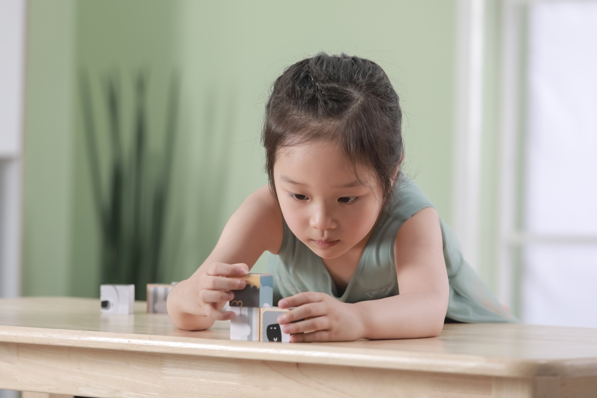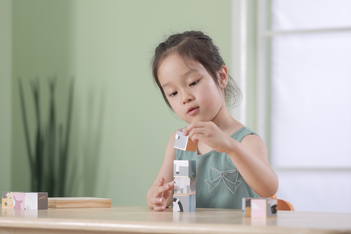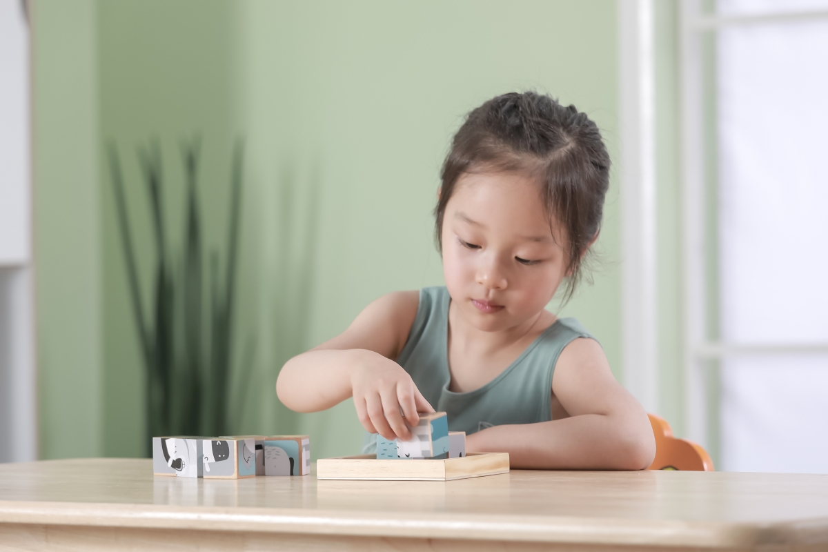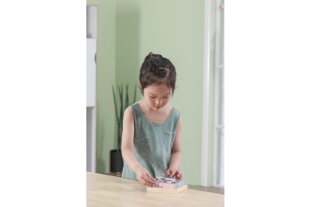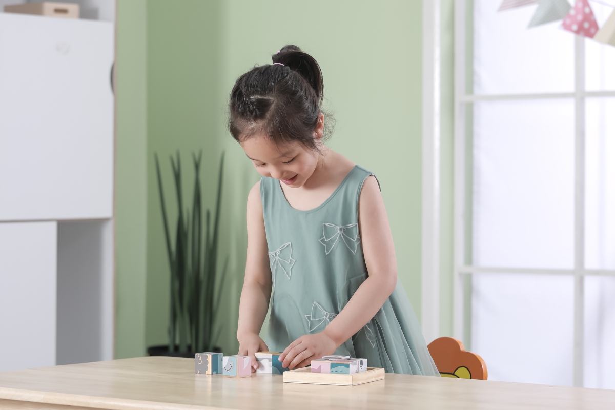 Dřevěné kostky, ze kterých lze složit 6 obrázků zvířátek. Celkem 9 ks kostek. Rozměry kostky cca 3,5 x 3,5 cm. Rozměry balení cca 13,5 x 14 x 5 cm. Vě..
