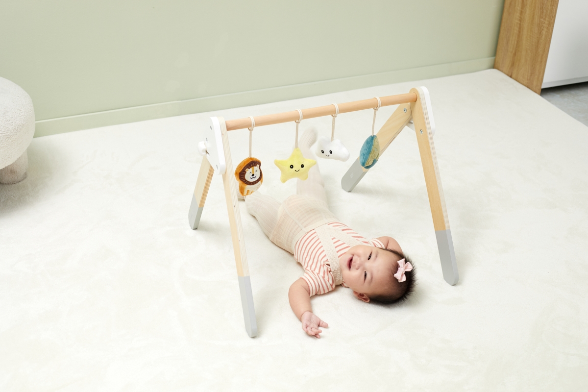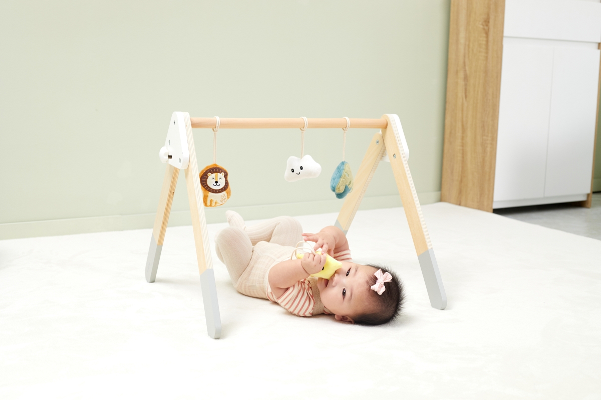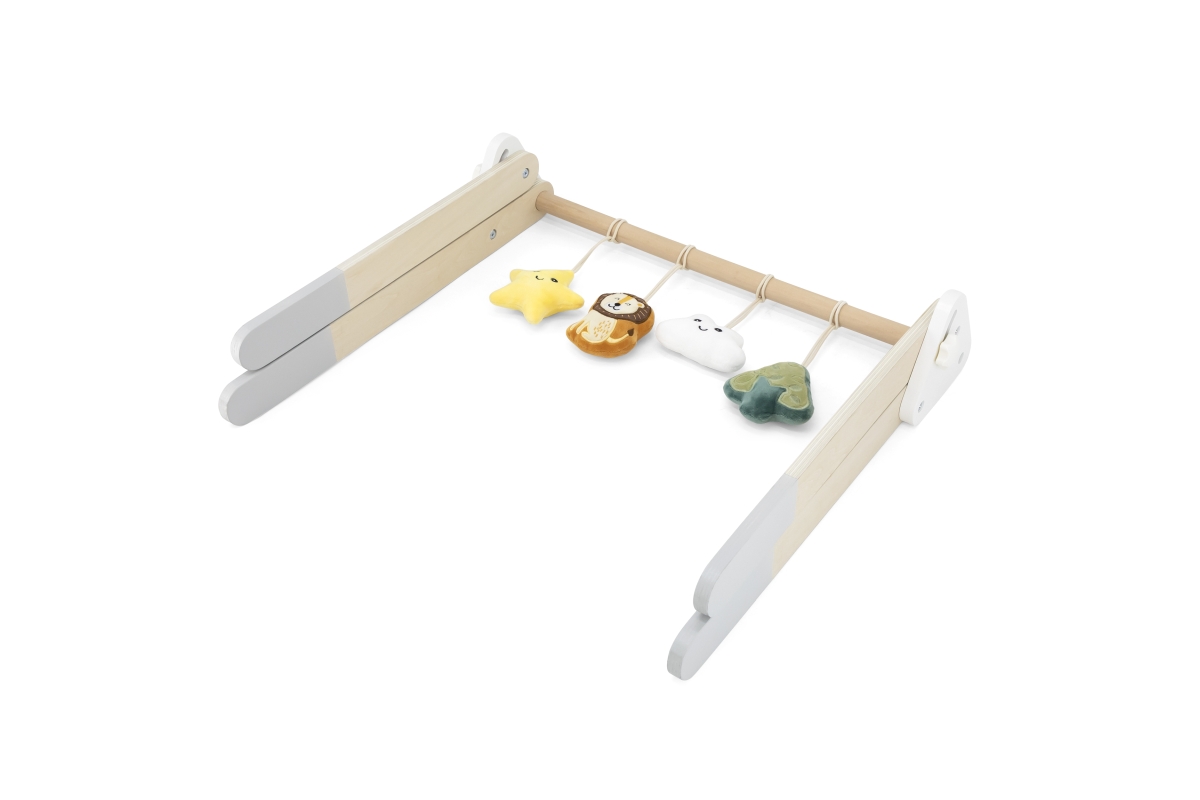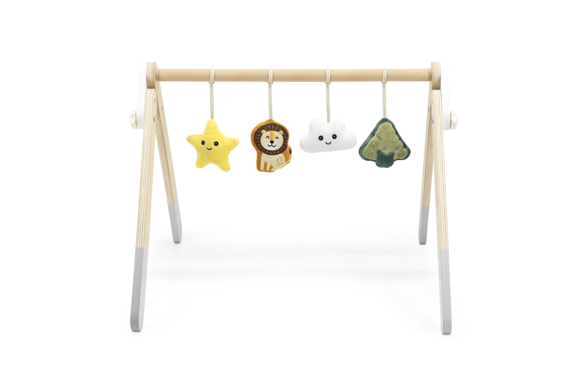 Tato robustní dřevěná dětská hrazdička je dodávána se 4 odnímatelnými doplňky, které mohou vydávat různé zvuky, abyste je mohli uchopit a hrát. Atraktivní a roztomilý design snadno upoutá pohledy dětí. Pomáhá rozvíjet svaly krku, paží a nohou dětí a koordinaci ruka-oko, když se kroutí a natahují, aby se dotýkaly měkkých hraček. Rozměr hrazdičky cca 61,5 x 57,5 x 44,5 cm. Rozměr balení cca 55 x 13 x 11 cm. Věk 0+