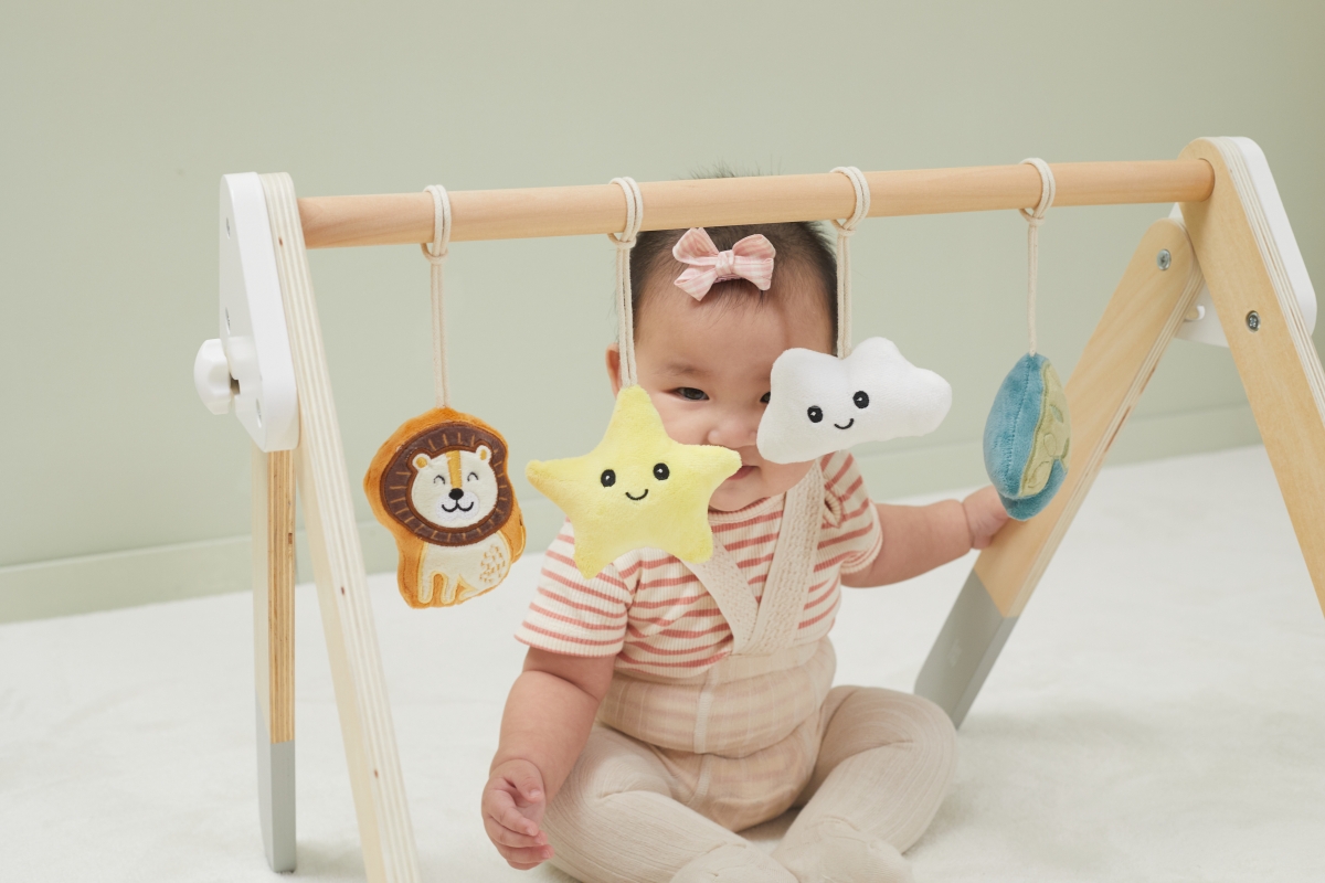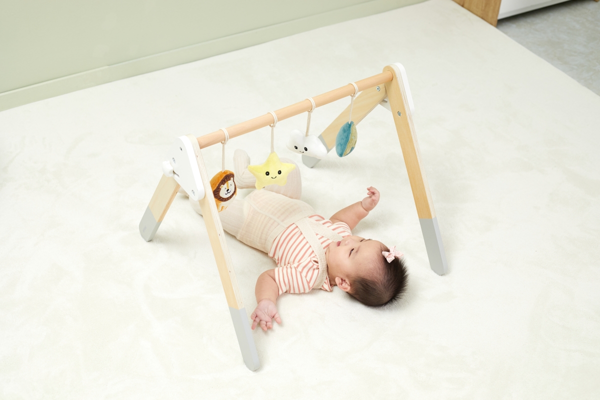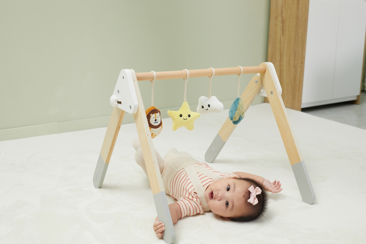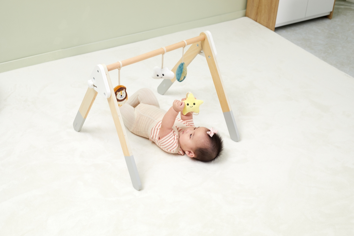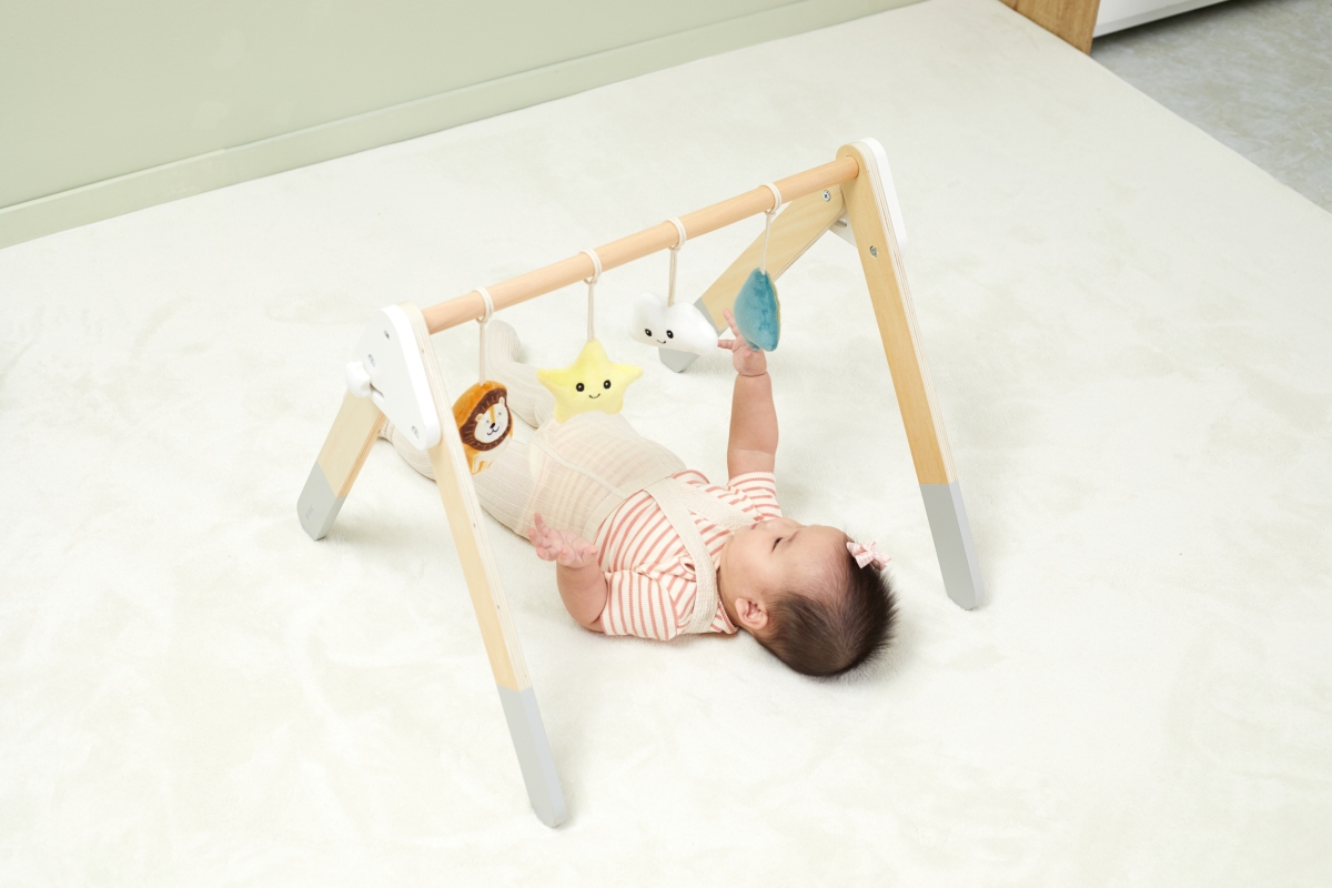 Tato robustní dřevěná dětská hrazdička je dodávána se 4 odnímatelnými doplňky, které mohou vydávat různé zvuky, abyste je mohli uchopit a hrát. Atraktivní a roztomilý design snadno upoutá pohledy dětí. Pomáhá rozvíjet svaly krku, paží a nohou dětí a koordinaci ruka-oko, když se kroutí a natahují, aby se dotýkaly měkkých hraček. Rozměr hrazdičky cca 61,5 x 57,5 x 44,5 cm. Rozměr balení cca 55 x 13 x 11 cm. Věk 0+