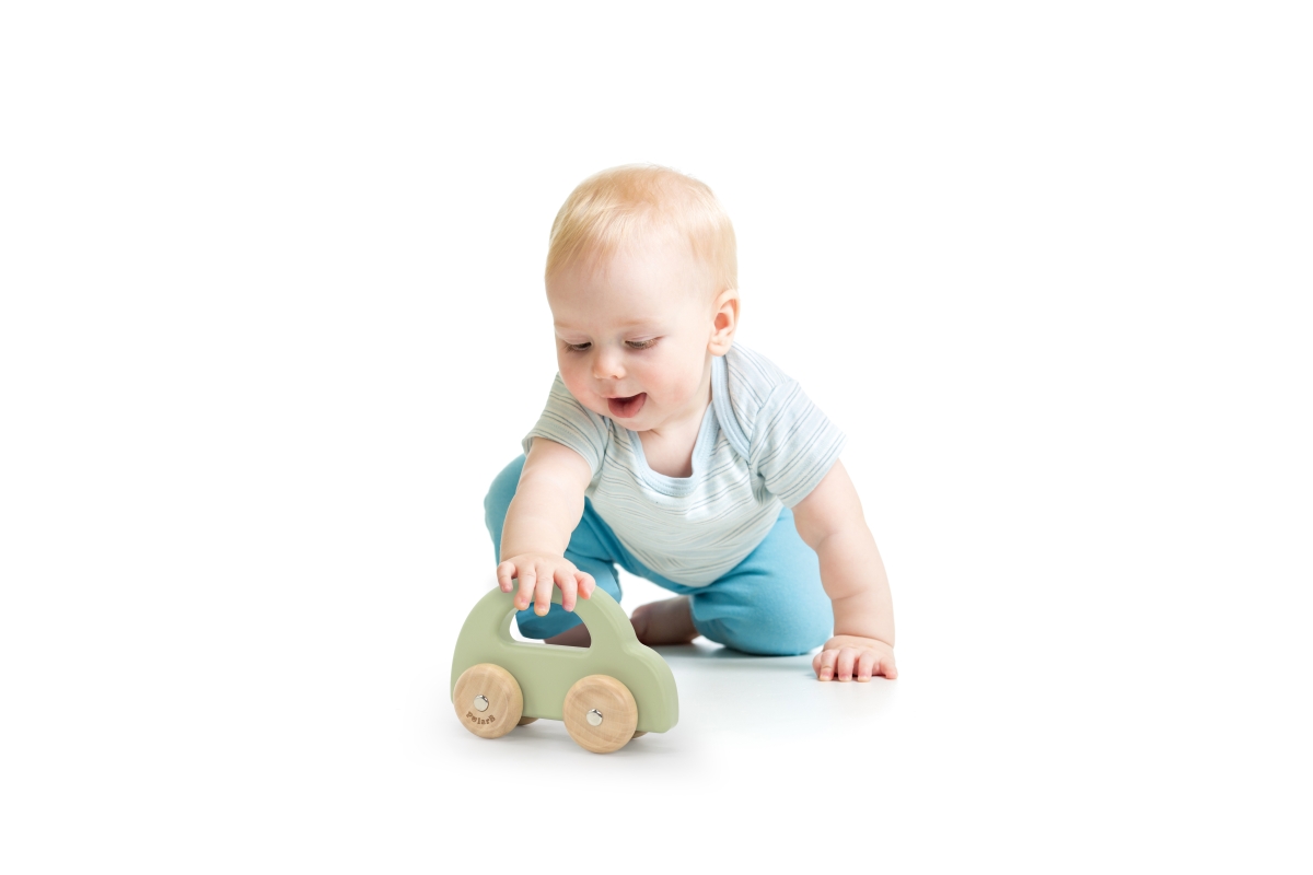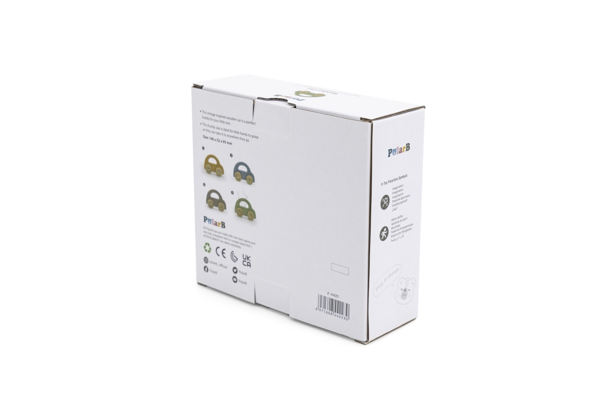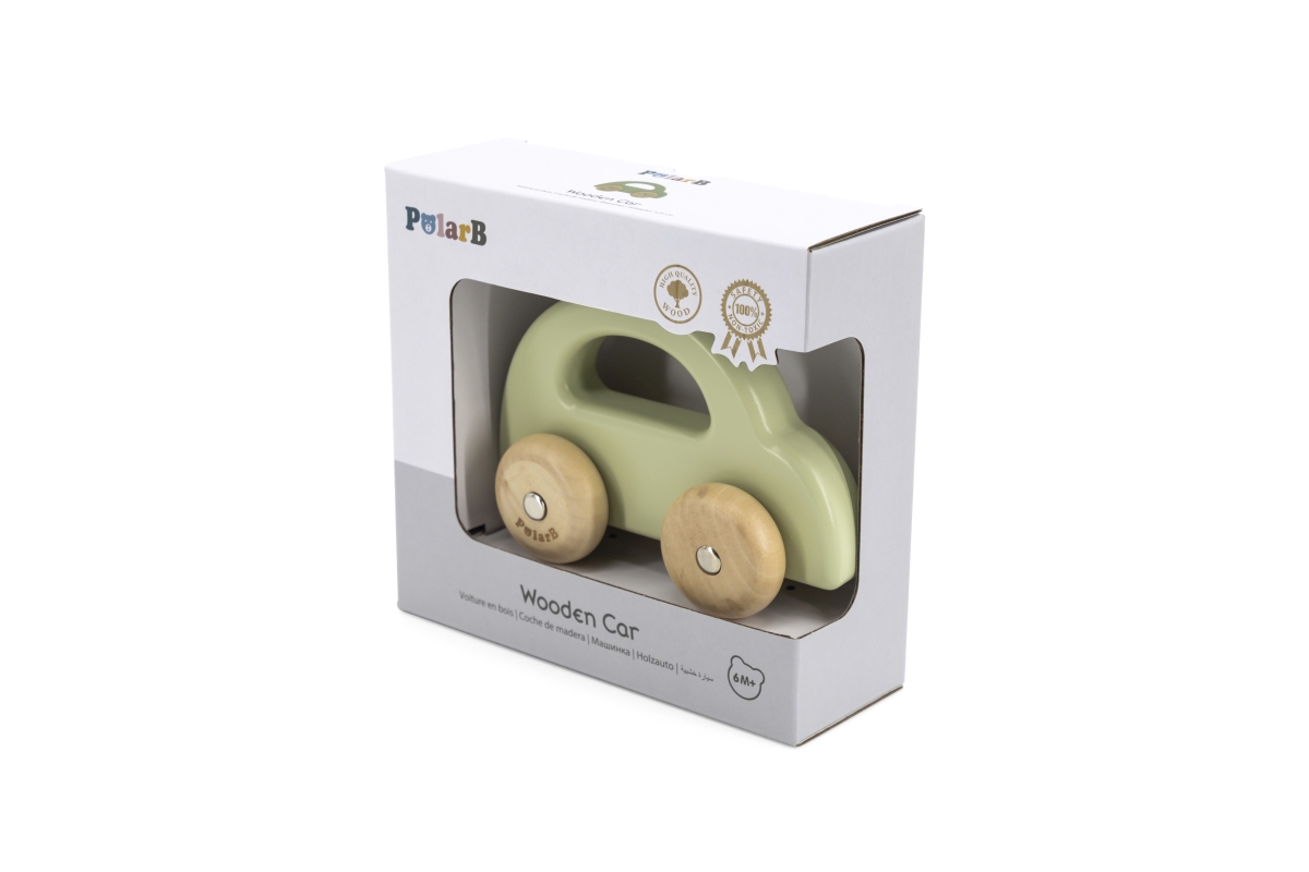 Dřevěné autíčko s pohybujícími se koly pro nejmenší děti. Rozměry 14x5,2x9,5 cm. Rozměry balení cca 17x15,5x6 cm. Věk 6m+..