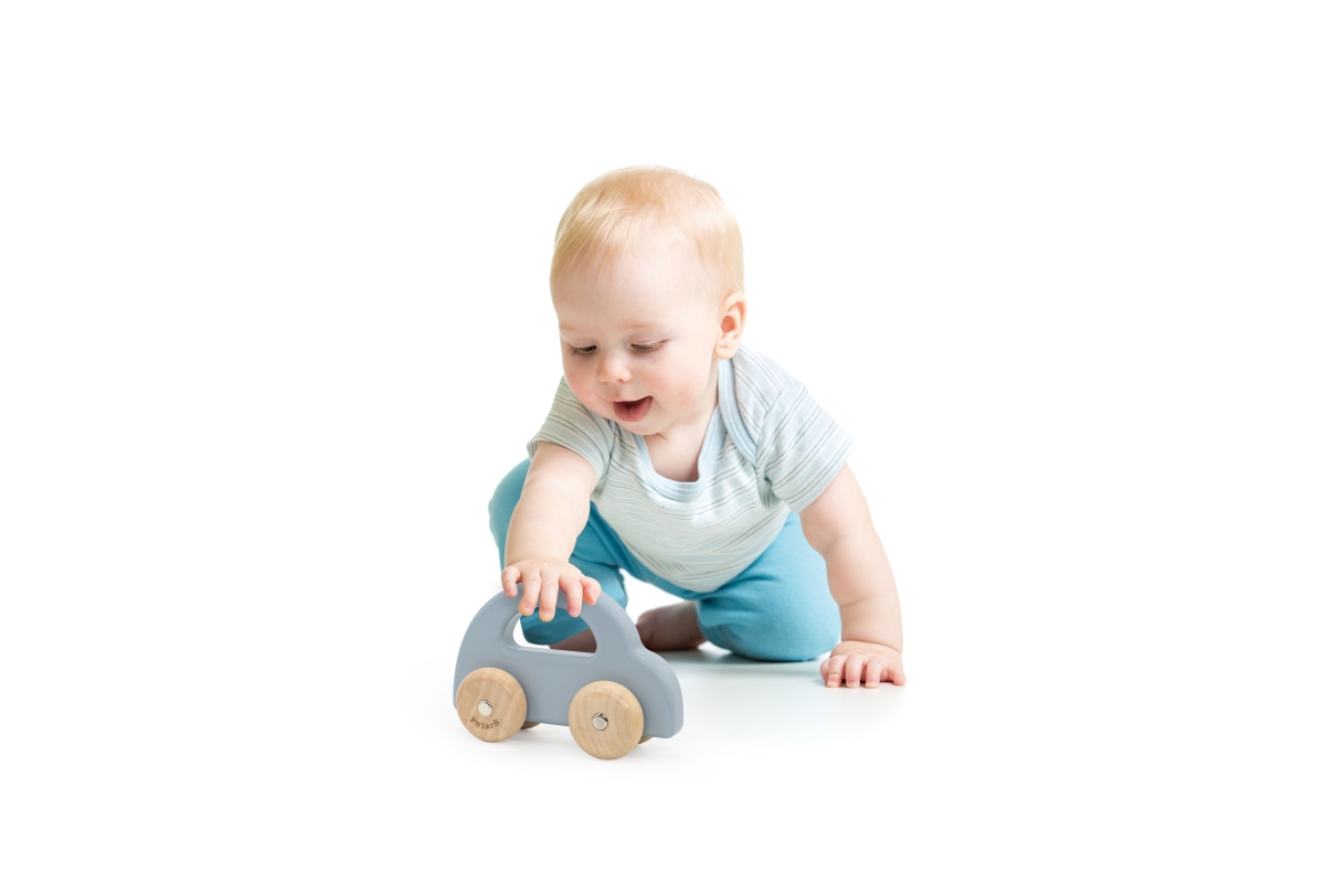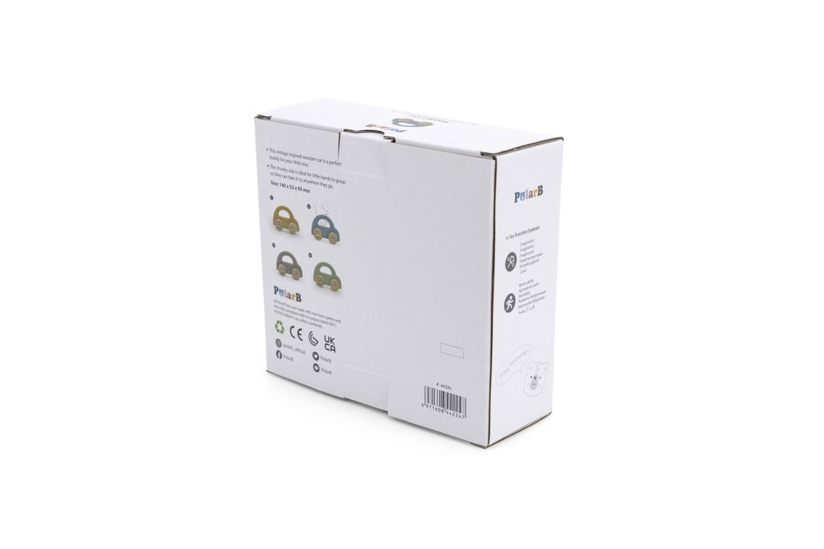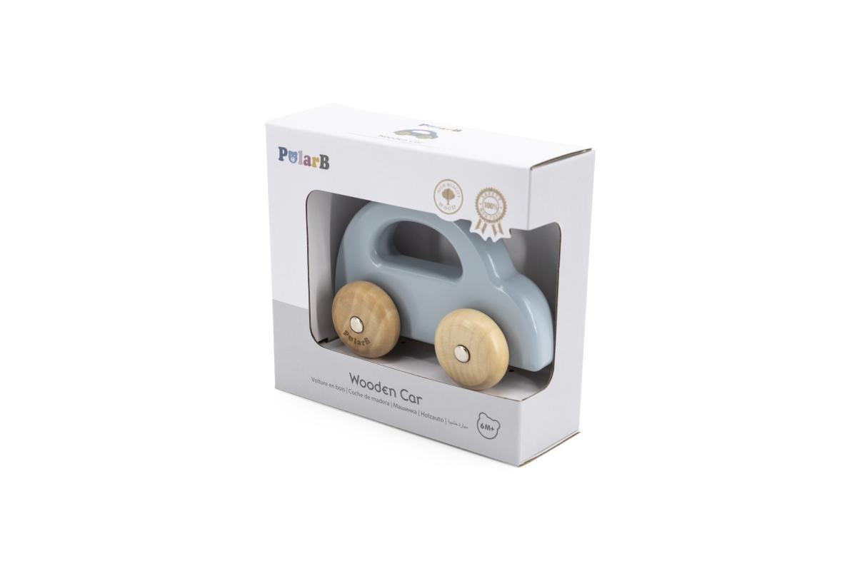 Dřevěné autíčko s pohybujícími se koly pro nejmenší děti. Rozměry 14x5,2x9,5 cm. Rozměry balení cca 17x15,5x6 cm. Věk 6m+..