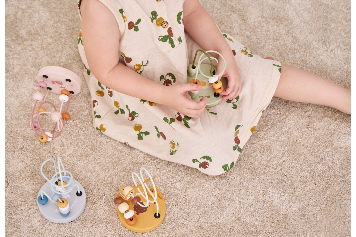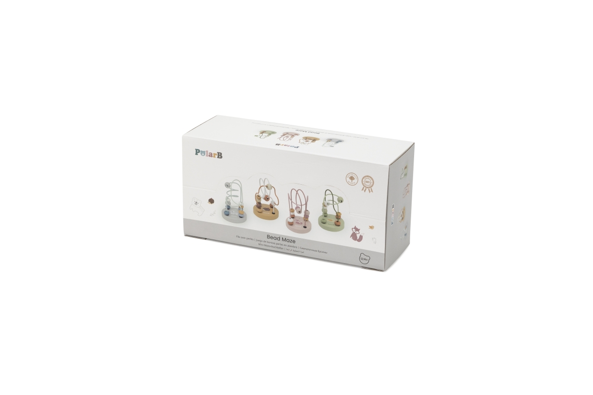 Dřevěný labyrint s motivy zvířátek. Rozměry 9x9x13 cm. Věk 12m+..