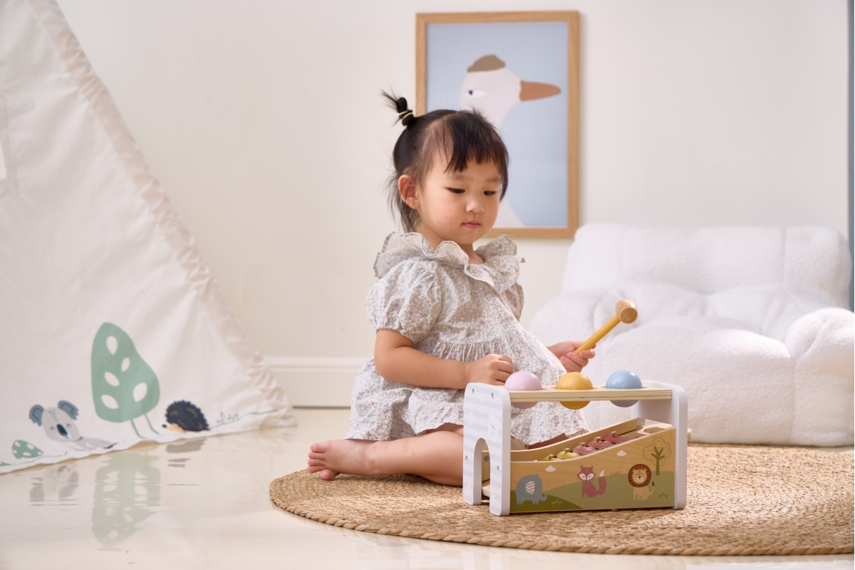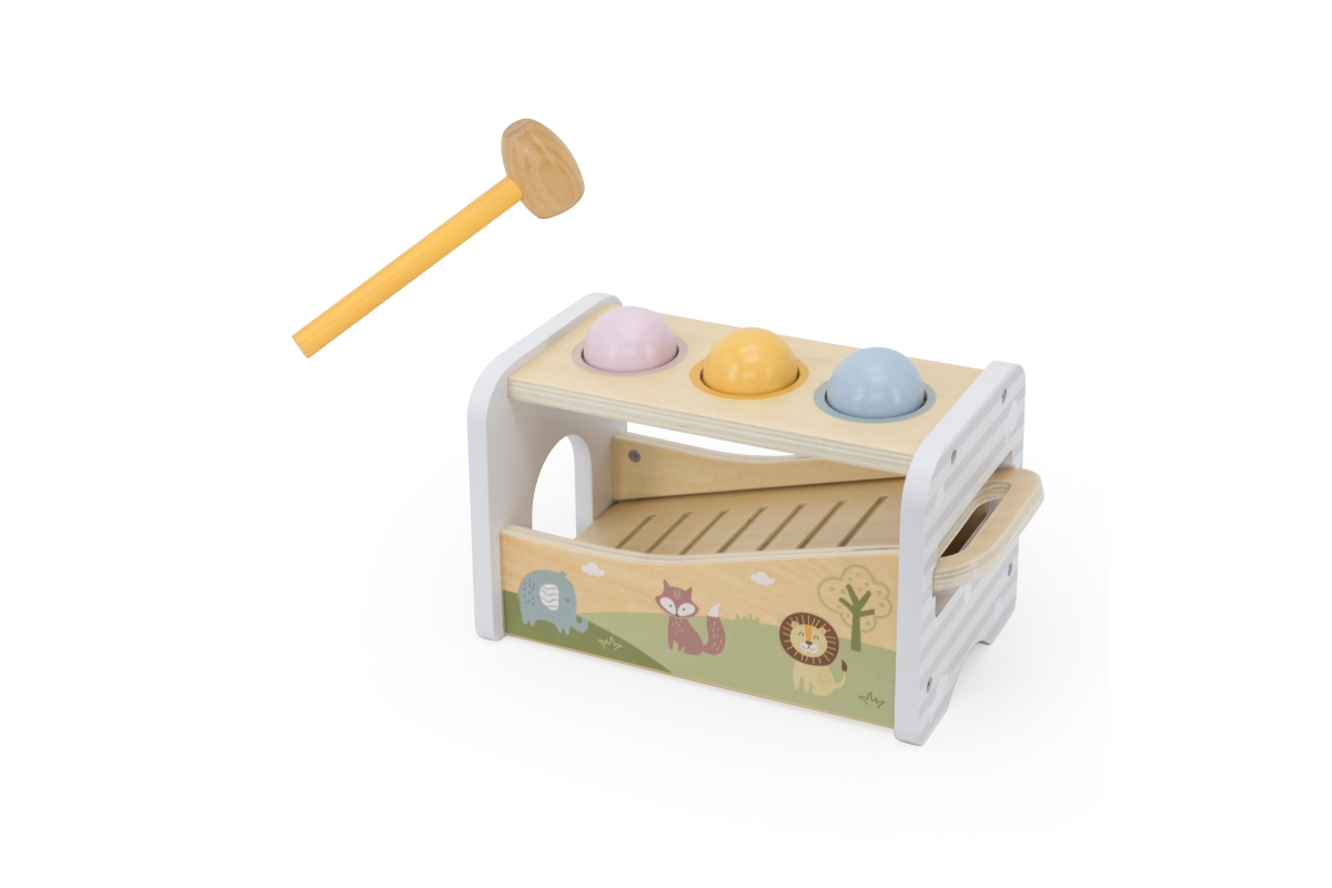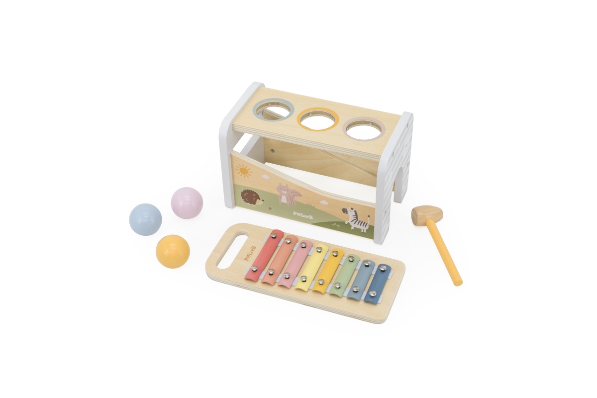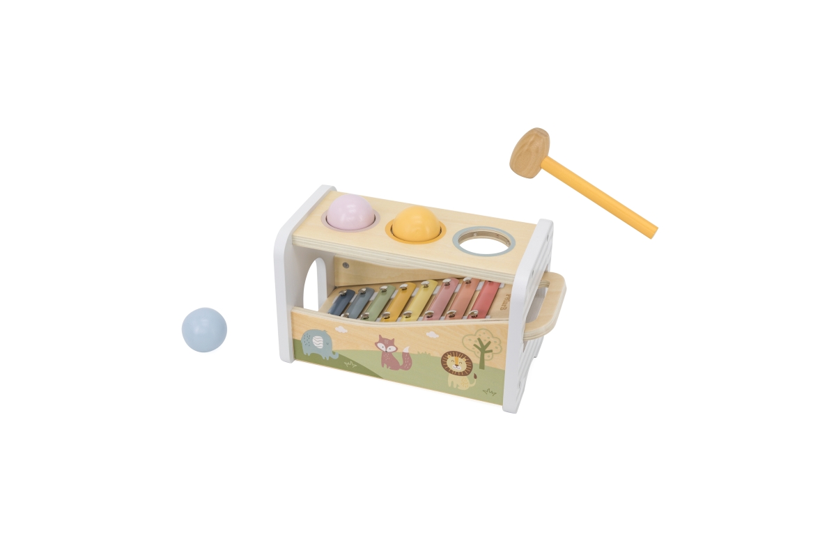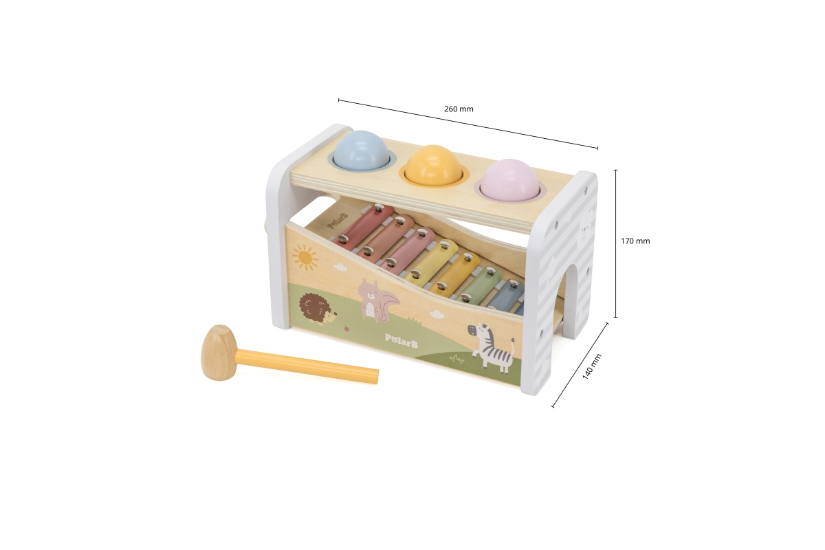 Dřevěná zatloukačka s xylofonem. Rozměry 26x14x17. Rozměry balení 28x16x15 cm. Věk 18m+..
