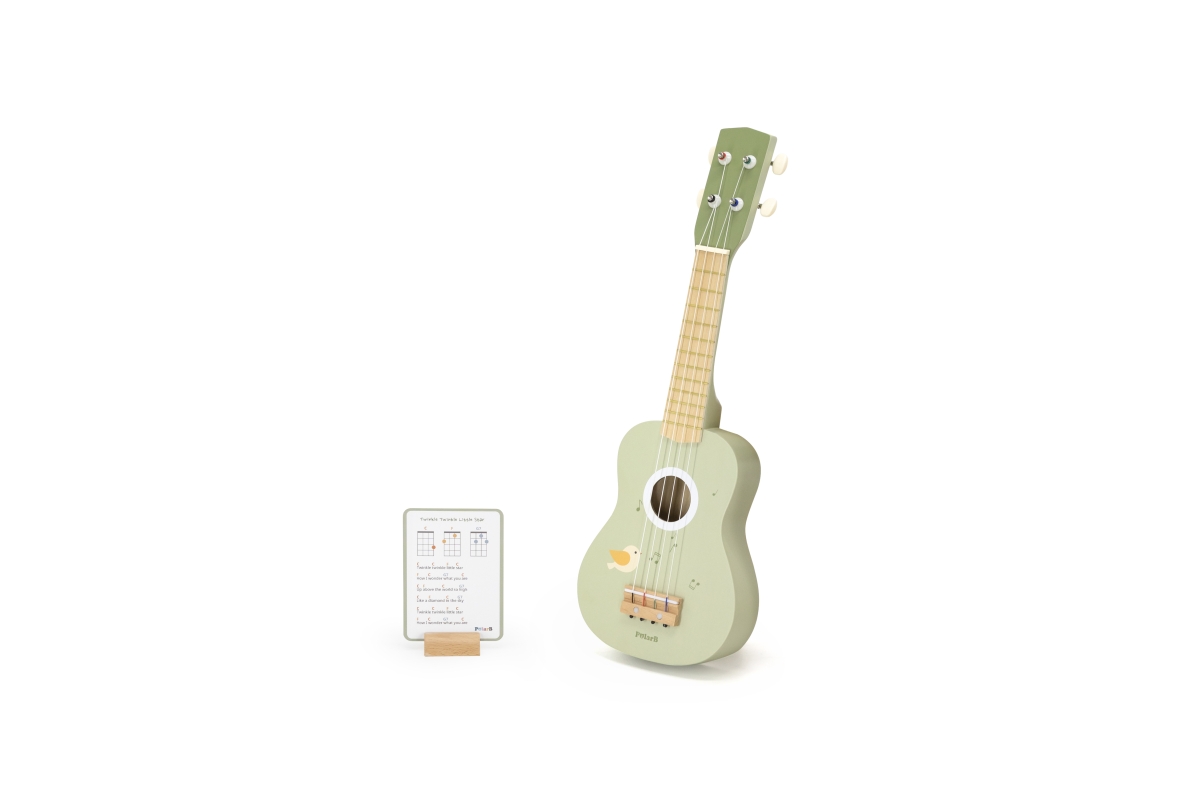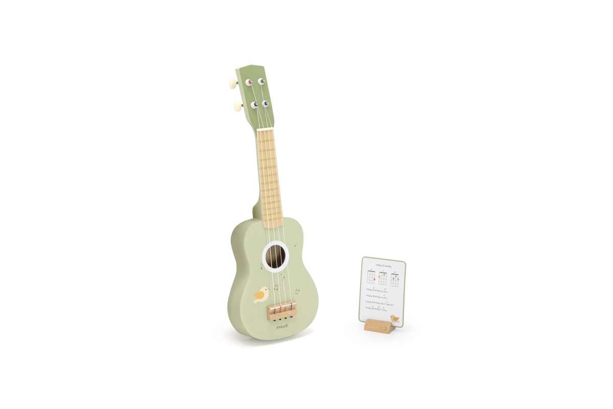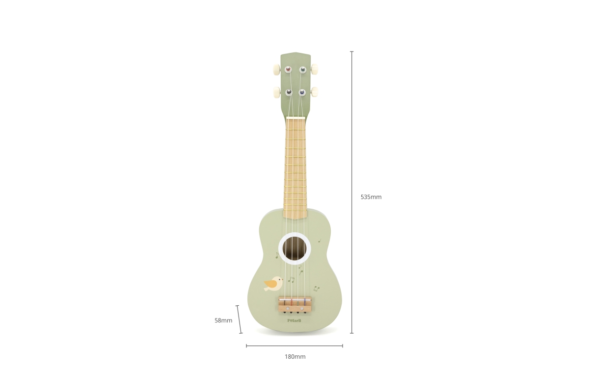 Dřevěné ukulele. Rozměry hudebního nástroje 53,5x18x5,8 cm. Baleno v krabici. Rozměry balení 55x20x6,5 cm. Věk 3+..