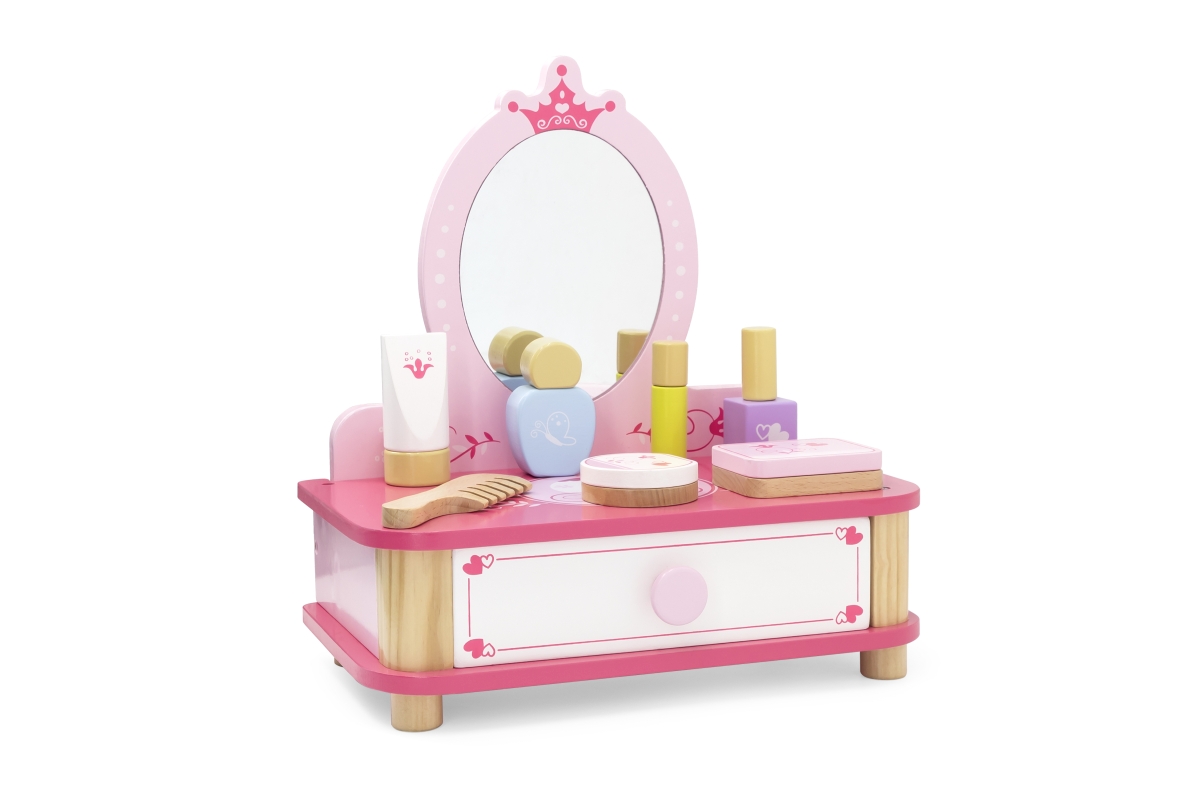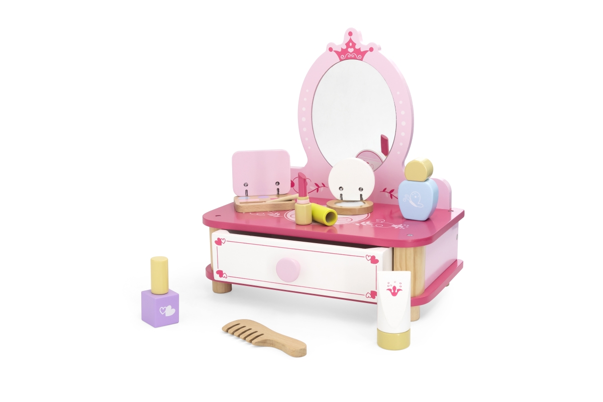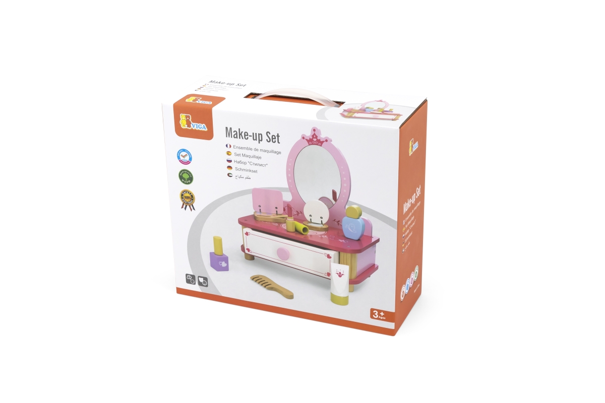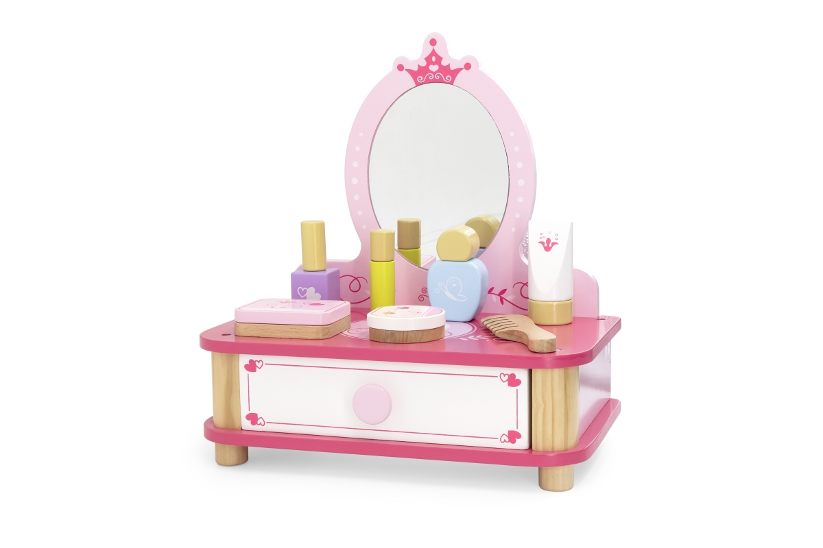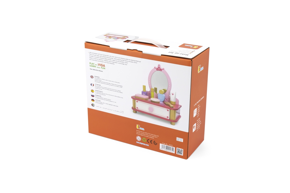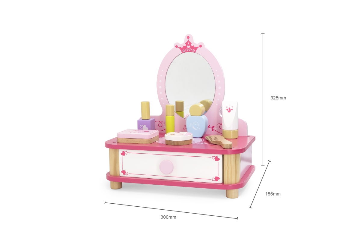Dřevěný toaletní stolek s doplňky. Balení obsahuje toaletní stolek se zrcadlem, hřeben, lahvičky a další doplňky. Rozměry cca 30 x 32,5 x 18,5 cm. Roz..