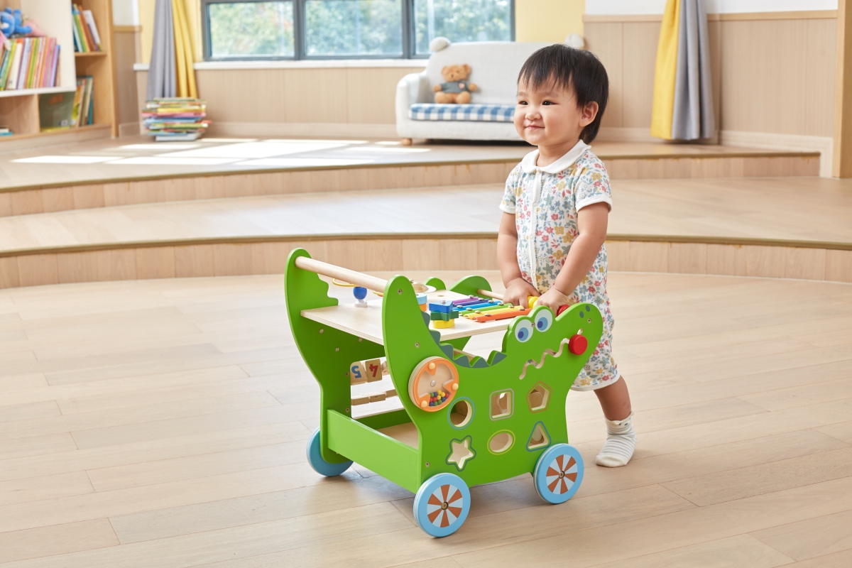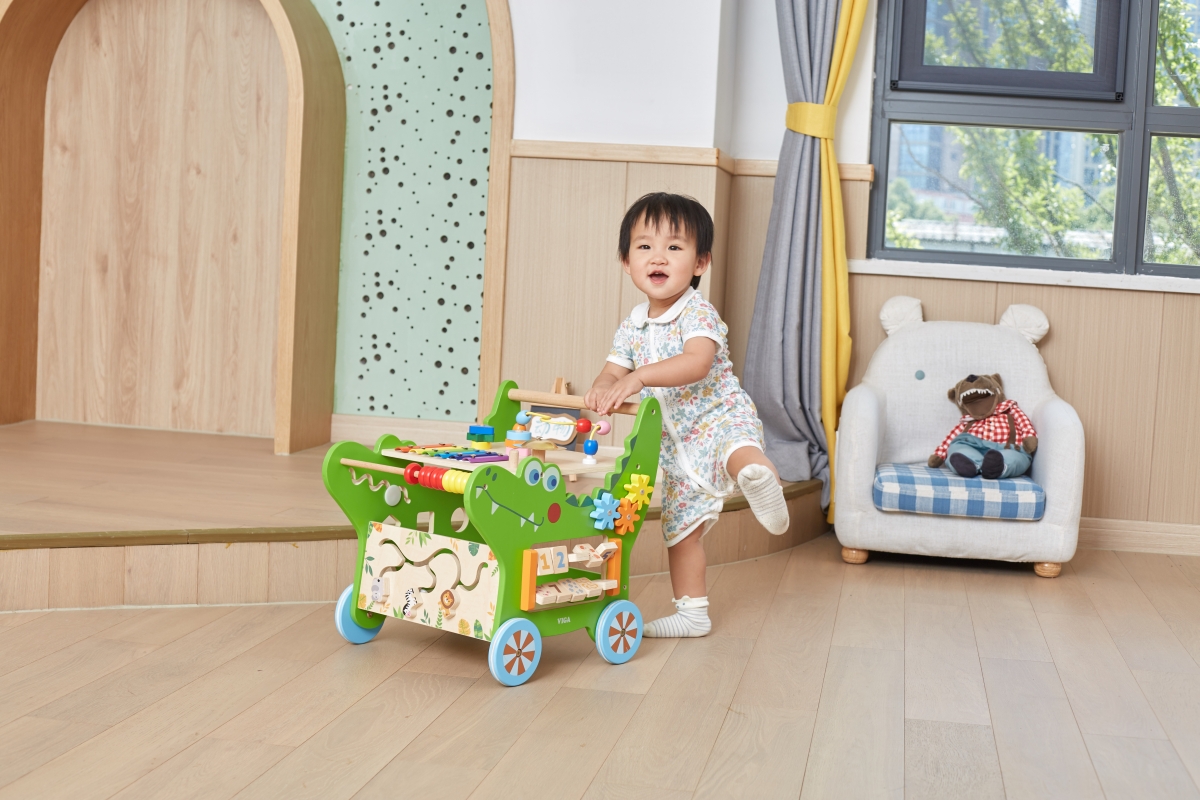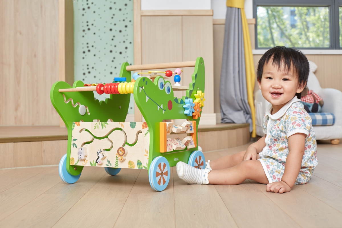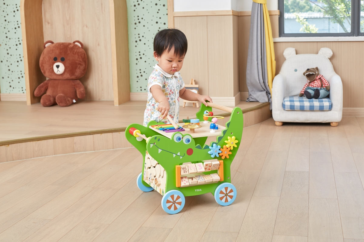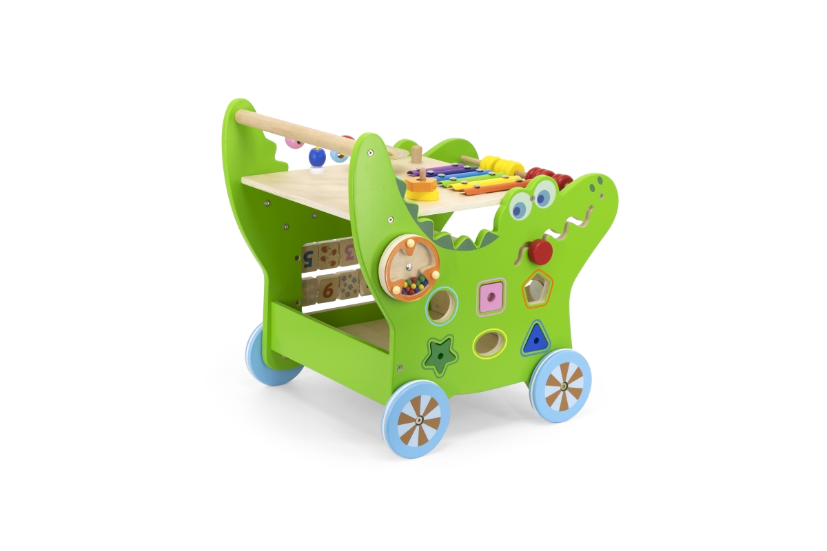 Dřevěný krokodýl chodítko od značky VIGA obsahuje celou řadu vzrušujících aktivit pro batole: labyrint zvířátek, xylofon, ozubená kola, třídič tvarů, počítadlo a mnoho dalších. Odolná konstrukce nabízí stabilní oporu, aby se miminko mohlo začít učit sebevědomě chodit a pomáhá mu udržovat rovnováhu. Rozměr cca 43,3 x 41,7 x 35,9 cm. Věk 12m+