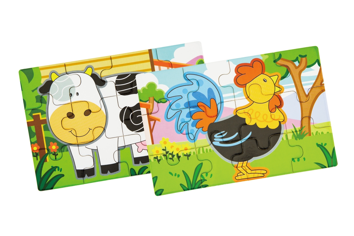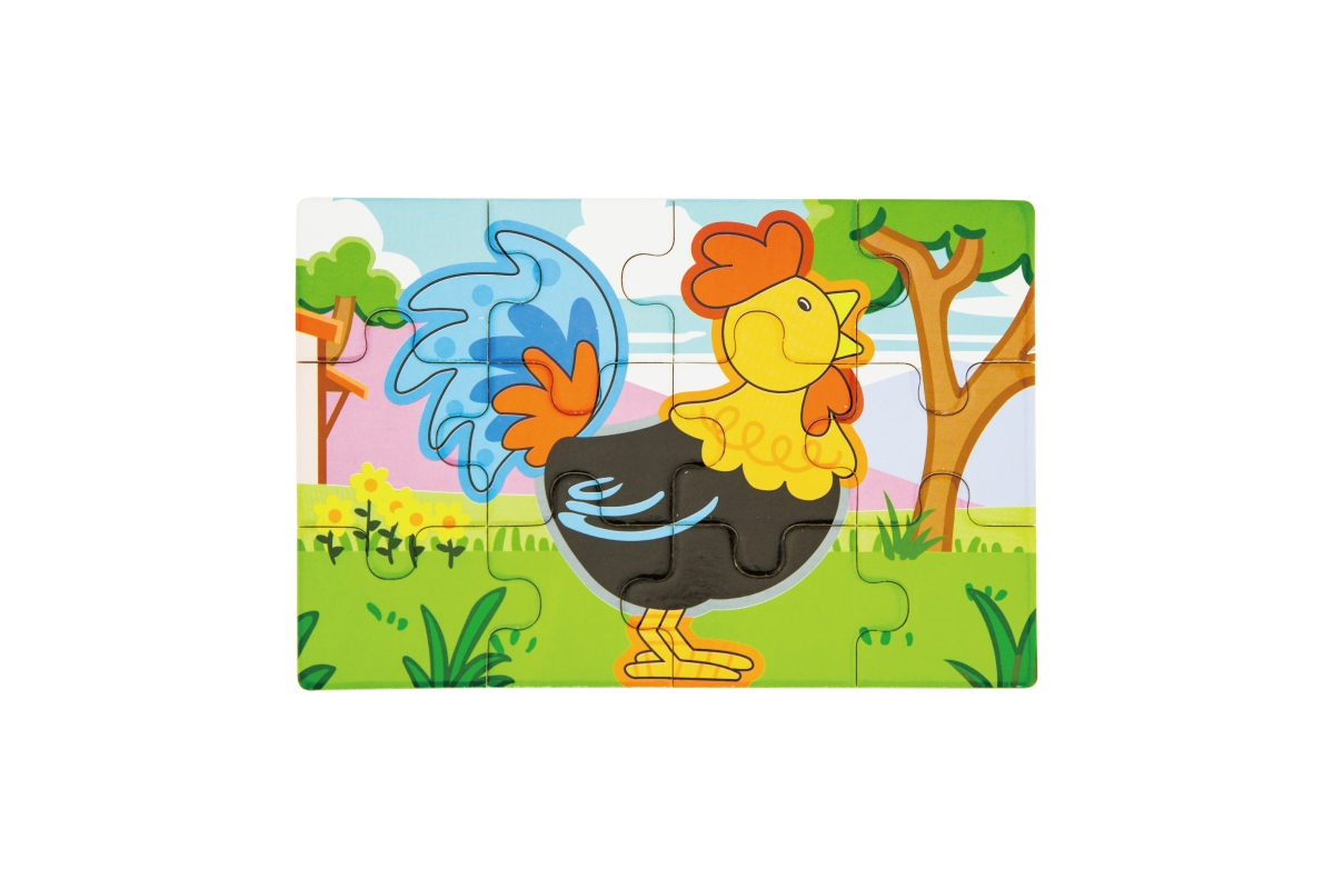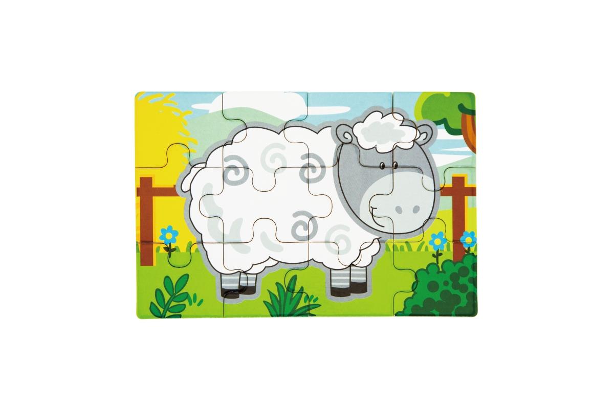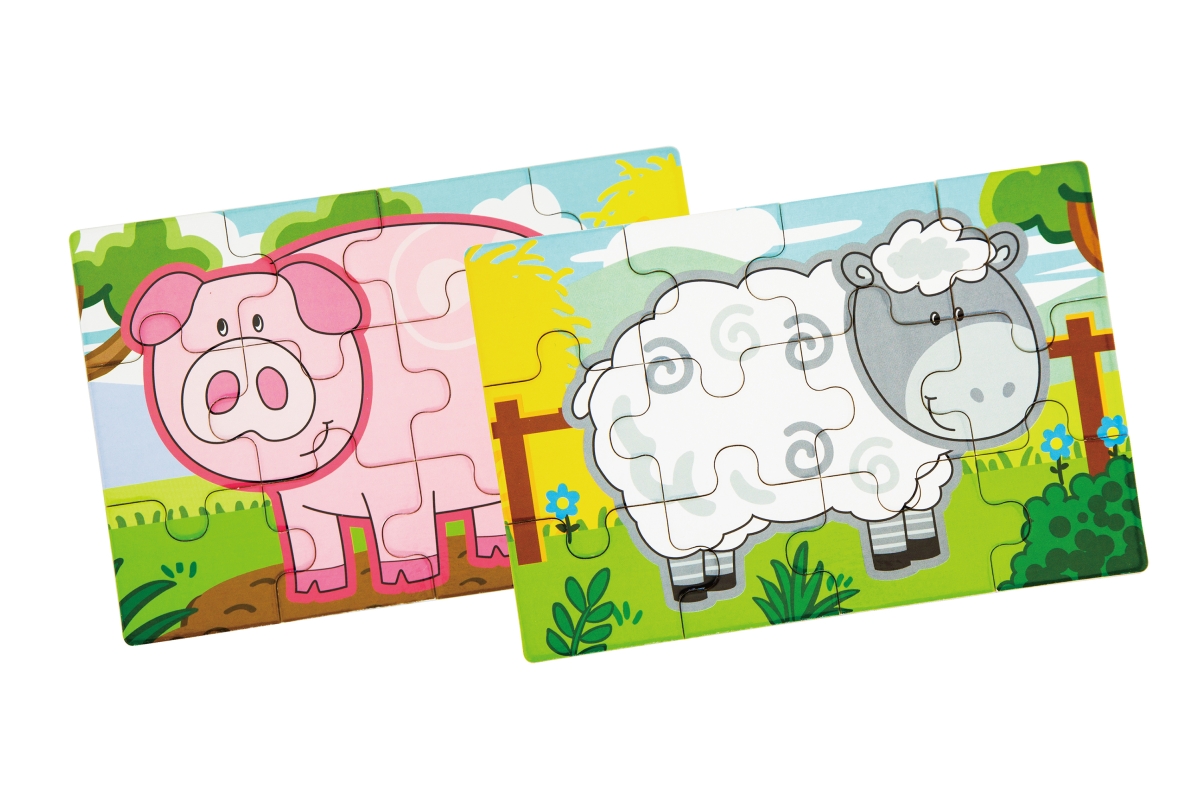 Dřevěné puzzle s motivy farmy. Balení obsahuje celkem 4 obrázky (celkem 48 dílů). Z puzzlí lze postavit jeden dlouhý obrázek všech 4 zvířátek. Rozměry..