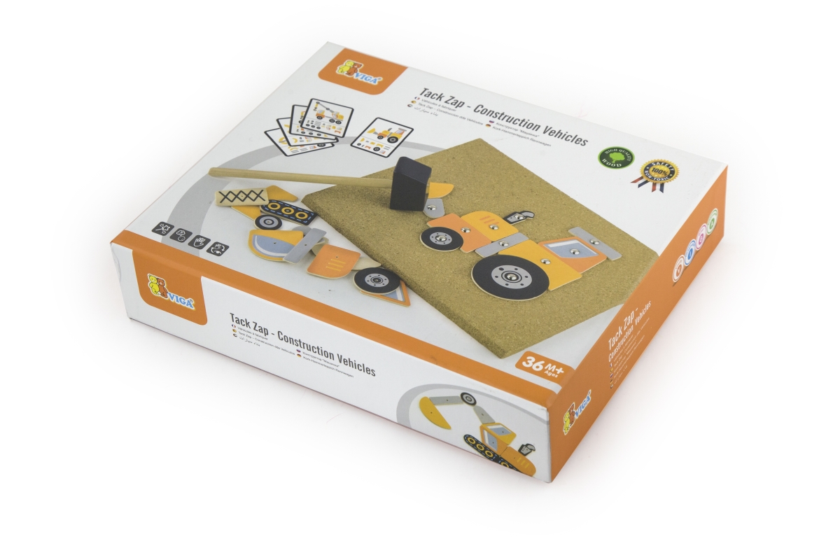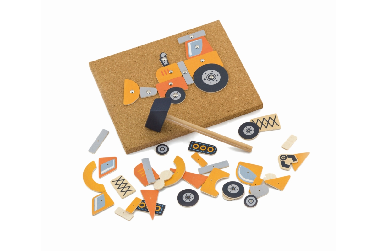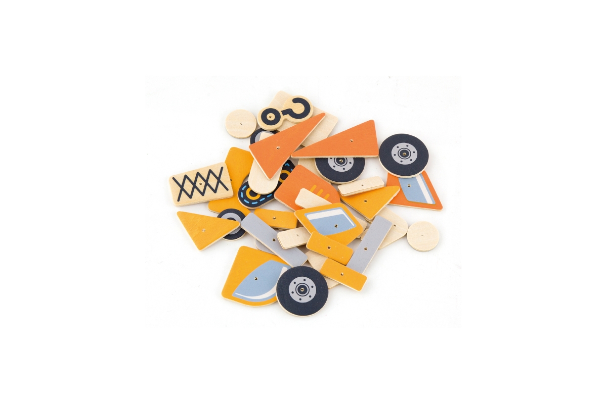 Dřevěné zatloukání obsahuje 5 karrtičeks motivem stavebních strojů a dle této předlohy je nutné setavit na korkovou destičku a zatlouci. Rozměry balen..