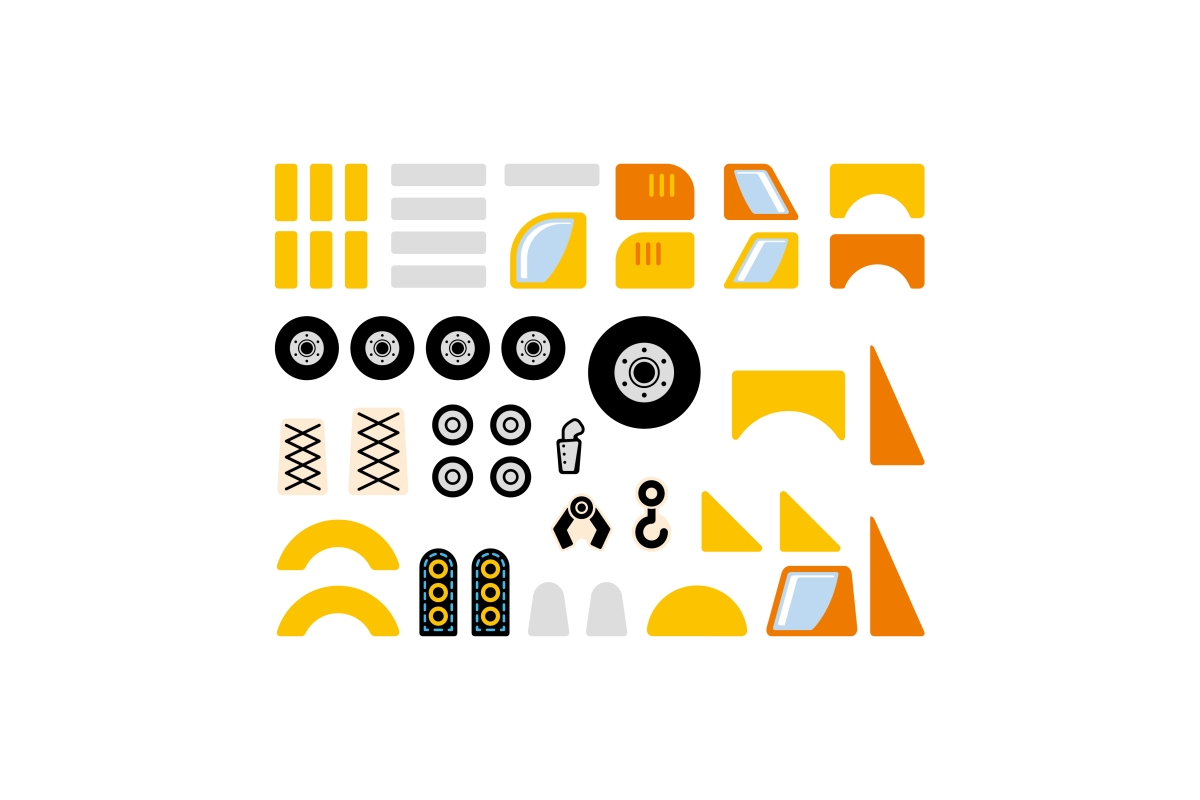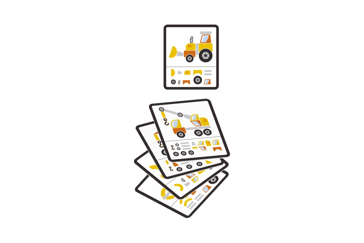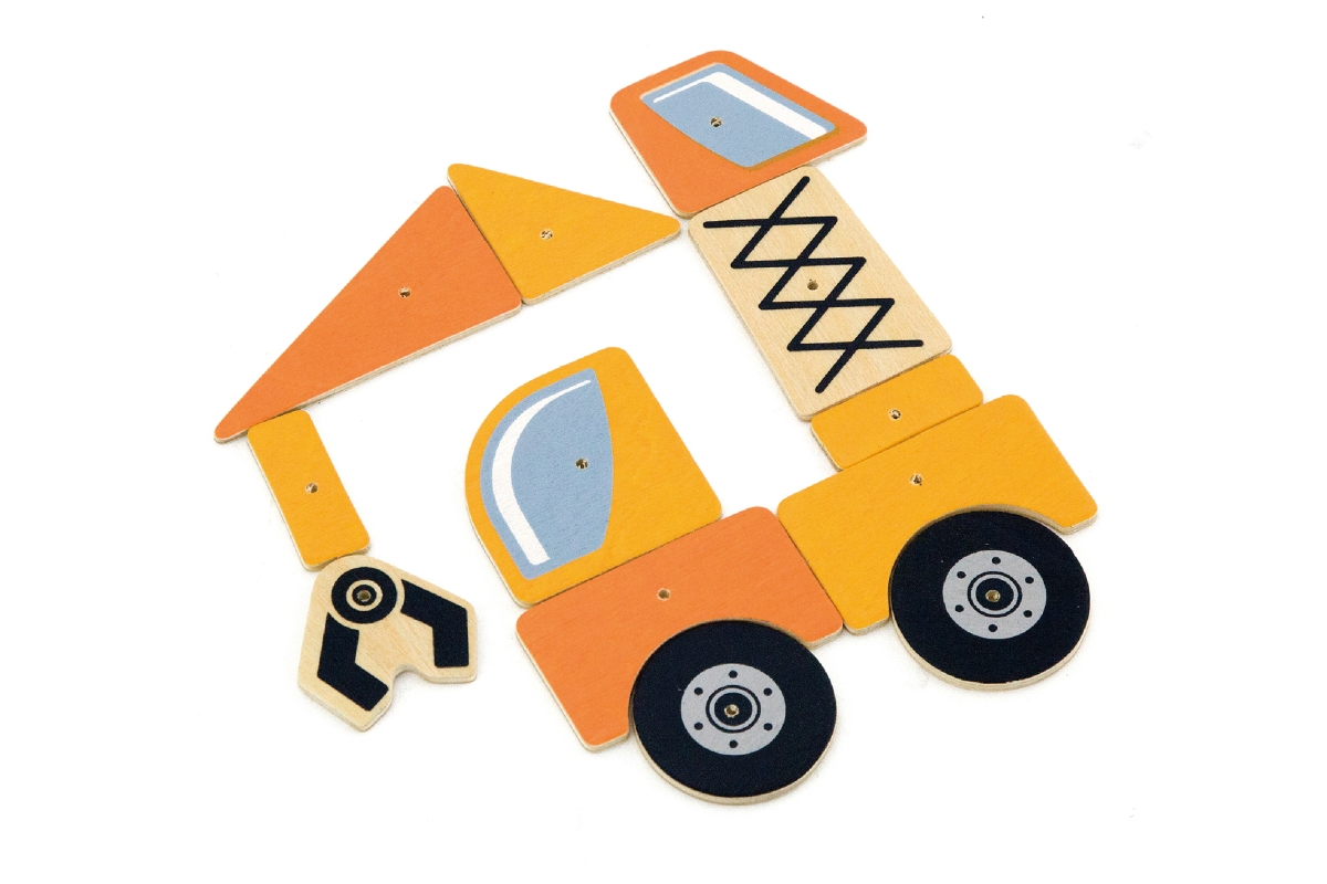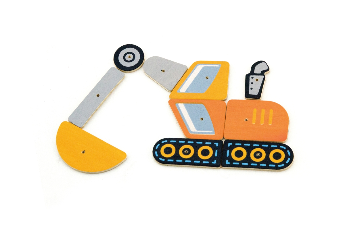 Dřevěné zatloukání obsahuje 5 karrtičeks motivem stavebních strojů a dle této předlohy je nutné setavit na korkovou destičku a zatlouci. Rozměry balen..