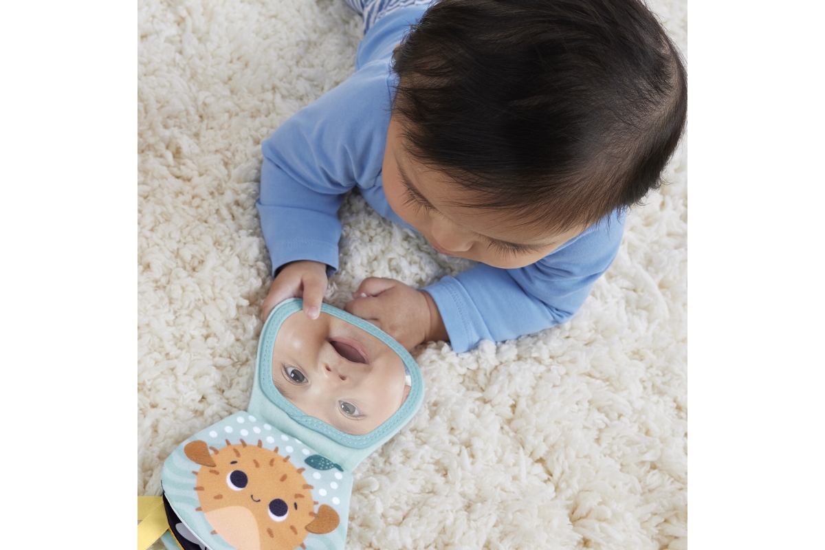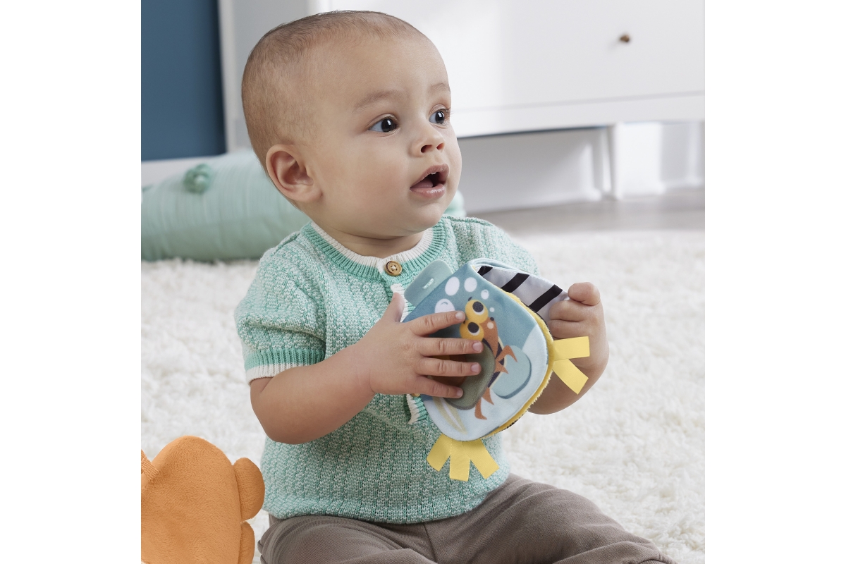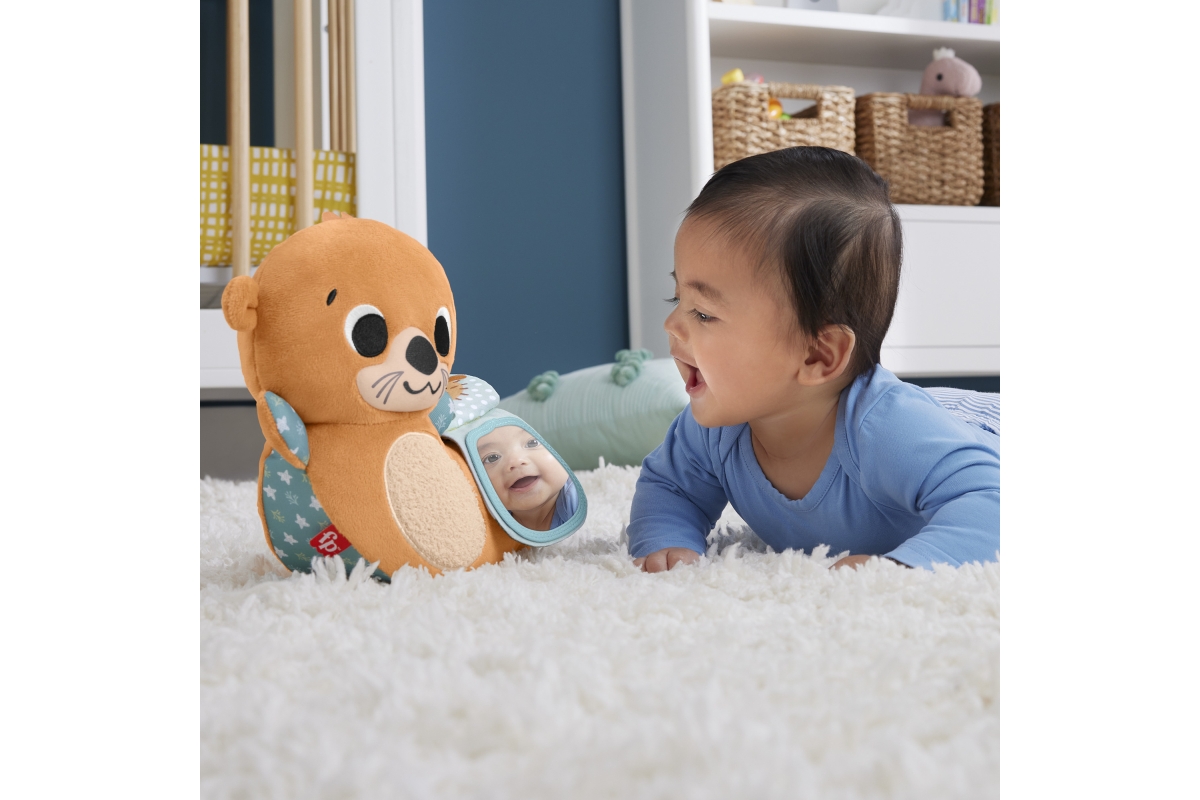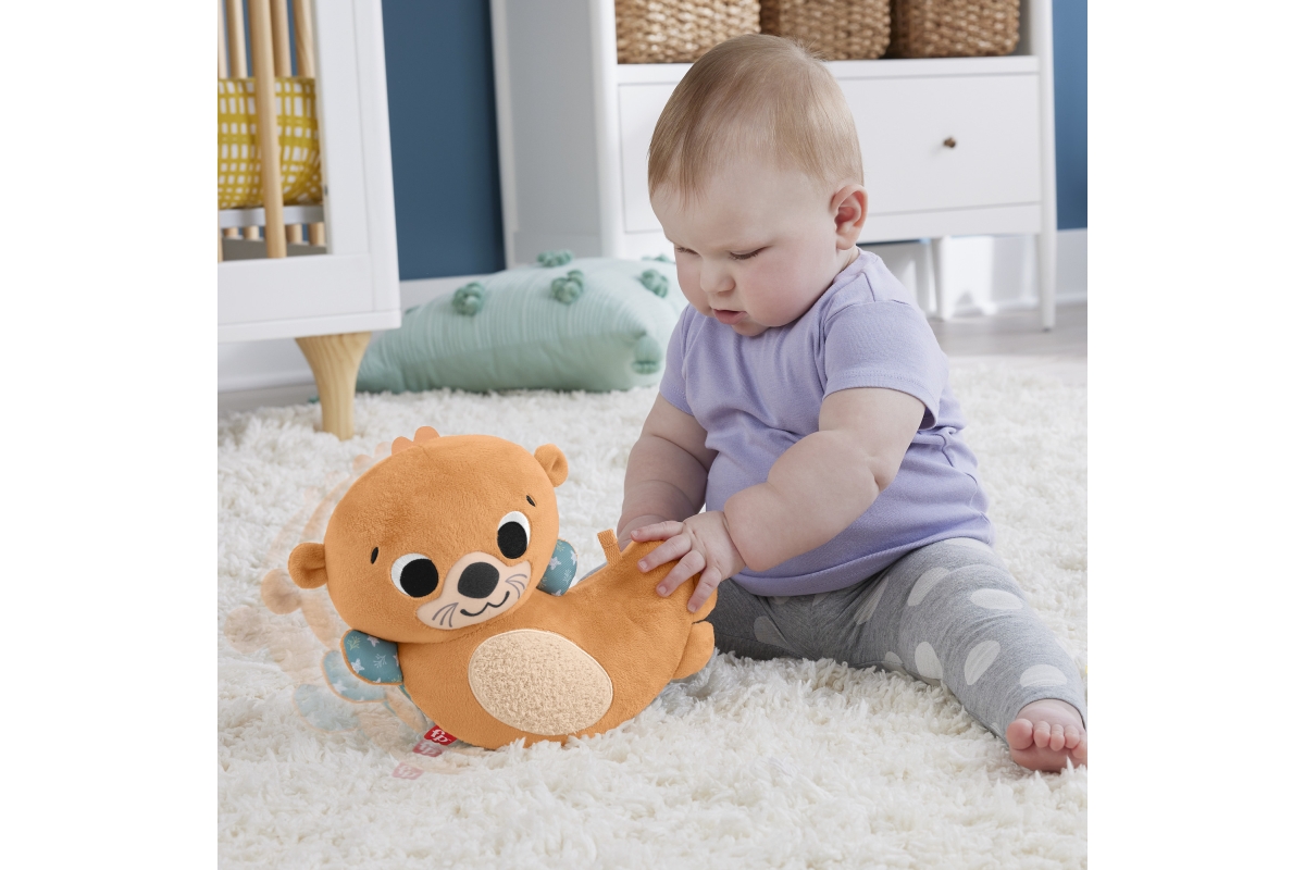 Rozkošná plyšová senzorická hračka od Fisher-Price® roste spolu s vaším dítětem od doby, kdy tráví čas na bříšku, až po dobu, kdy sedí a hraje si. Vydra je dodávána s měkkou knížkou, která má vysoce kontrastní barvy a navíc je vybavena zrcátkem pro sebepoznávání a mačkacím panelem, který stimuluje rozvíjející se smysly děťátka. Během chvilky na bříšku umístěte zrcátko s knížkou na záda vydry, aby se děťátko mohlo vidět. Když dítě začne sedět, z vydry se stane zábavná hračka, která se houpe dopředu a dozadu, a při hře s netopýry vydává zábavné cinkání. Knížka i vydra mají ideální velikost pro zábavu i na cestách!