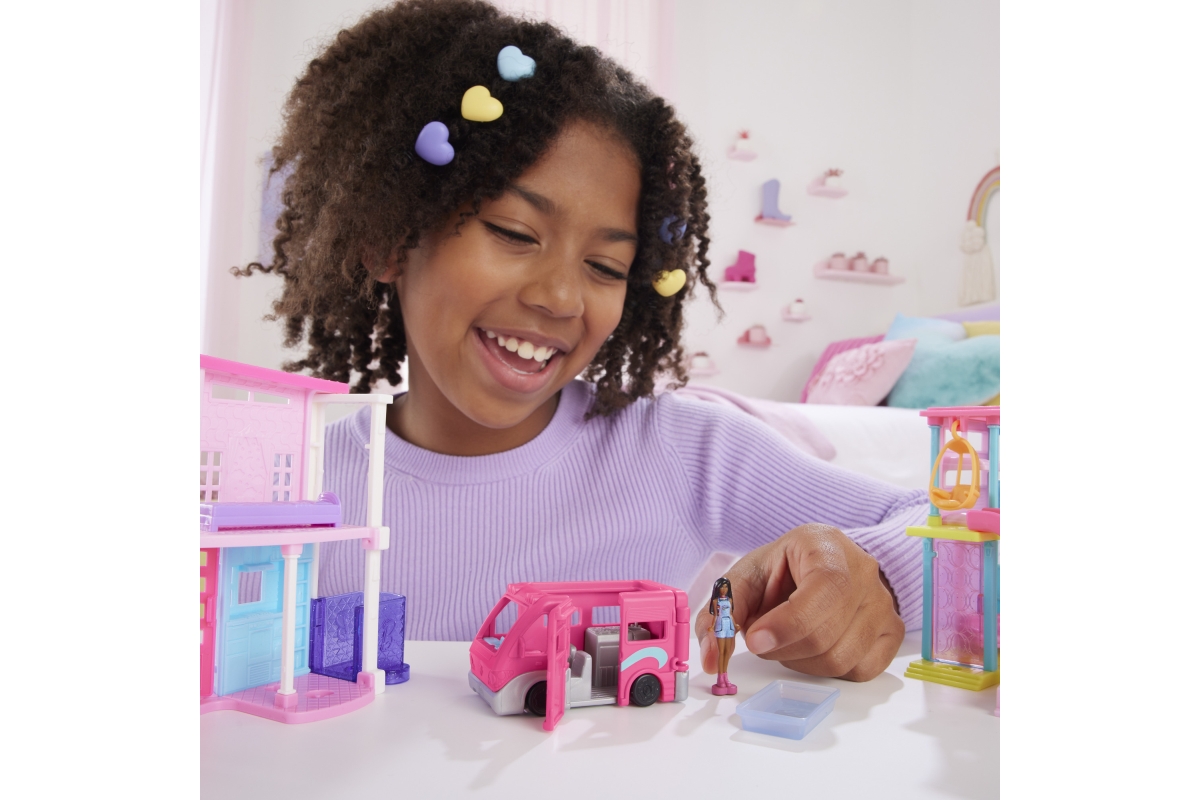 Vydejte se na výlet do Mini BarbieLandu s karavanem snů - zmenšeným na miniaturní velikost a s překvapením v podobě možnosti proměny barev! Součástí b..