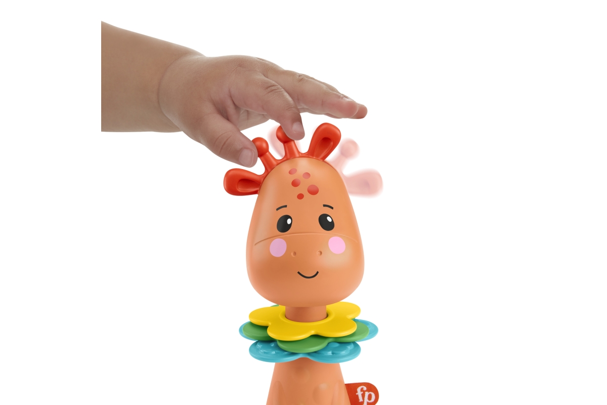 Živá žirafa Fisher-Price® Activity Giraffe je plná zábavných aktivit, které může vaše dítě objevovat doma nebo kamkoli půjdete. Malé ručičky mohou uchopit a otočit barevné klapavé kroužky, otáčet ušima žirafy tam a zpět a tahat měkké nohy kolem dokola. Uchopení a interakce s aktivitami pomáhá posílit jemné motorické dovednosti dítěte, zatímco rozmanitost textur zapojí a potěší jejich smysly.