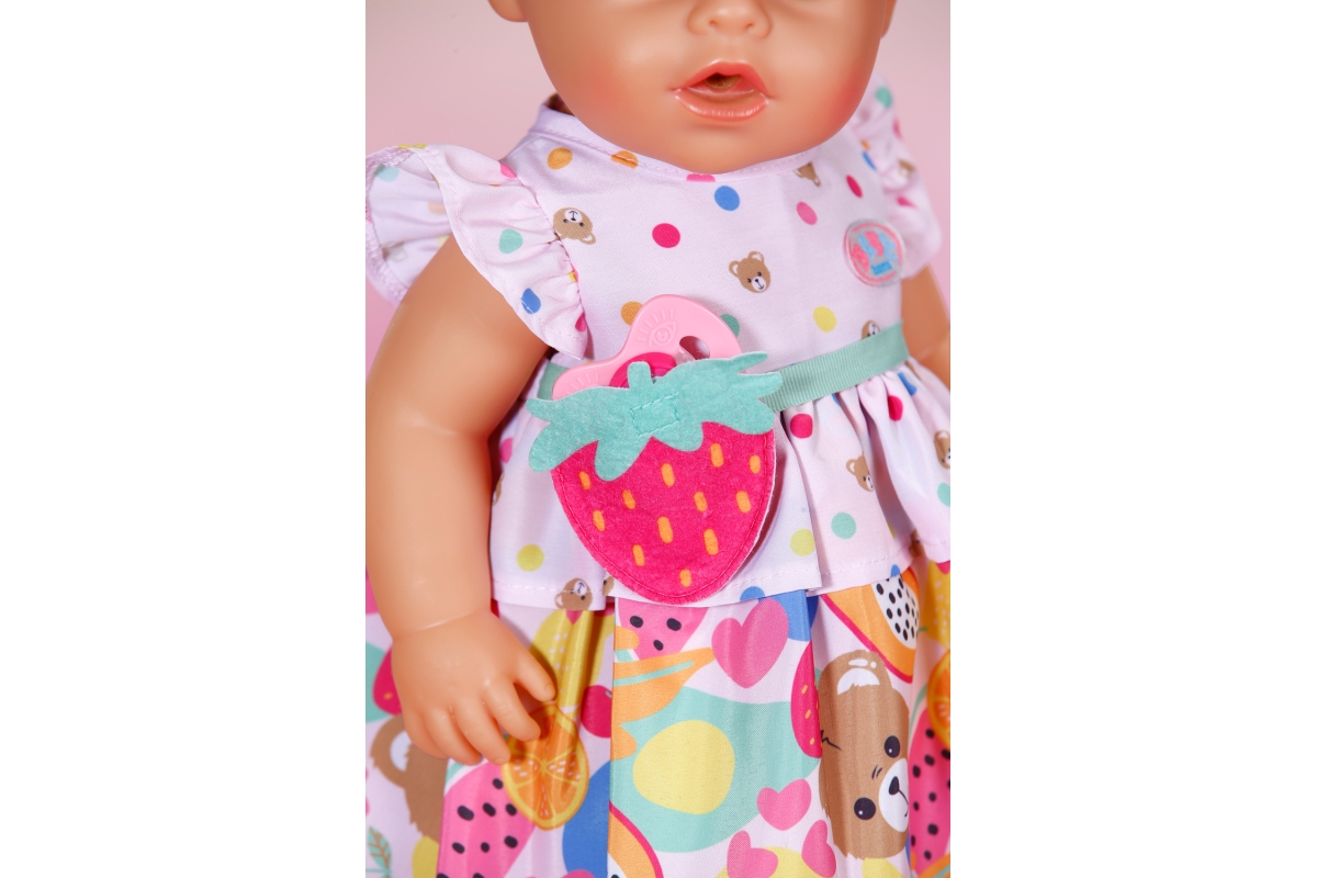 Krásné šatičky pro panenku Baby born s motivem ovoce a medvídků. Velikost oblečení 43 cm. Věk 3+..