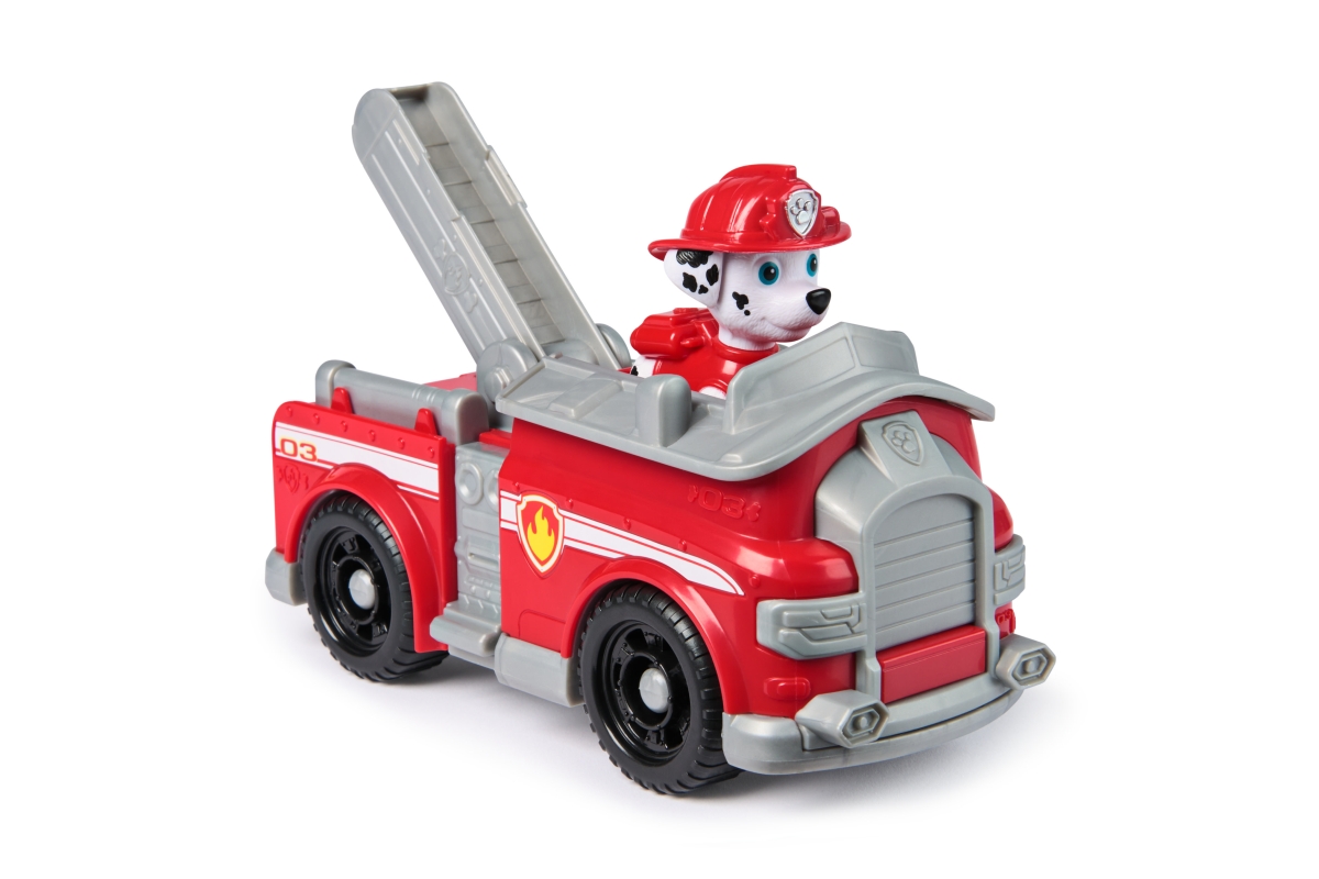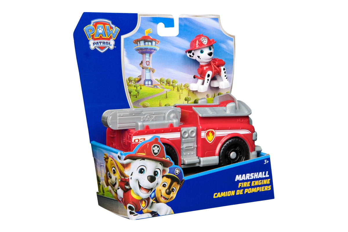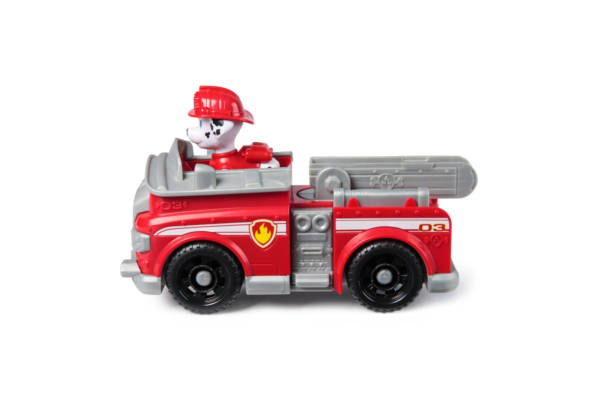 Tlapková patrola vyráží do akce ve svých záchranných vozidlech! Přidejte se k Marshallovi na akcí nabité mise s jeho hasičským vozem! Když nastanou potíže, připněte Marshallovy nohy na sedadlo řidiče a vyrazte na pomoc se skutečně funkčními koly a pohyblivým žebříkem! Milované policejní štěně z Tlapkové patroly a jeho vozidlo s autentickými detaily a realistickými prvky přináší úžasnou Tlapkovou patrolu k životu. Marshall a jeho vozidlo jsou vyrobené s ohledem na životní prostředí a jsou minimálně z 80 % z recyklovaného plastu! Spojte se s ostatními figurkami z Tlapkové patroly a jejich záchrannými vozidly (prodávají se zvlášť) a pomozte zachránit den v Adventure Bay! Hračky Tlapková patrola pro předškoláky a vzdělávací hračky pro batolata jsou dárky pro děti, které jsou fanoušky seriálu, podporují nápaditost při hraní a vylepšují jemné motorické dovednosti. Hrdinové z Tlapkové patroly a k nim patřící autíčka vám umožní znovu prožít vaše oblíbené okamžiky z různých dobrodružství Tlapkové patroly, jako jsou Mocné tlapky a Tlapková patrola ve filmu, nebo si vytvořit svá vlastní dobrodružství (prodávají se zvlášť). Užijte si dlouhé hodiny zábavy a vydejte se na dobrodružství inspirované seriálem Tlapková patrola s kompletními sadami týmu akčních štěňat a leteckých záchranářů, které zahrnují vozidla Tlapkové patroly, akční figurky a hračky pro batolata!