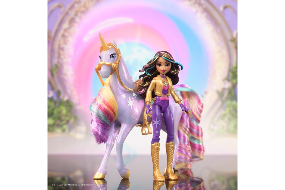 Oslavte pouto mezi jezdcem a jednorožcem se sadou figurek Sofie a Polárky! Tato sada inspirovaná animovaným seriálem od NETFLIXu a bestsellerovou knižní sérií, kde přátelství drží otěže osudu, podnítí nekončící nápaditá vyprávění. 11,5cm figurka Sofie se pyšní realisticky věrnými detaily a 7 klouby pro dynamické pózy. Polárka měří bezmála 13 cm a doplňuje Sofiin vzhled svými znaky světlé magie a duhovou hřívou a ocasem, které lze kartáčovat (kartáč je součástí balení). Při hraní posaďte Sofii na Polárku a jeďte za dobrodružstvím! Díky odnímatelné uzdě a sedlu zůstane Sofie bezpečně na svém místě a z Polárky nespadne. Chcete-li objevit všechny způsoby, jak si užít svět Jednorožčí akademie se svými oblíbenými postavami, si prohlédněte další malé panenky, jako jsou Ava, Layla, Isabel a Valentina spolu s jejich jednorožci (sady se prodávají samostatně), rozšiřte svůj kouzelný svět! Určeno pro děti, které mají rády jednorožce a koně, panenky a doplňky, hračky pro panenky, sběratelské předměty, plyšové hračky a další. Hračky s tematikou Jednorožčí akademie jsou perfektním dárkem pro dívky k narozeninám nebo jakékoli jiné příležitosti. Zažijte okouzlující dobrodružství v Jednorožčí akademii se sadou figurek Sofie a Polárka!