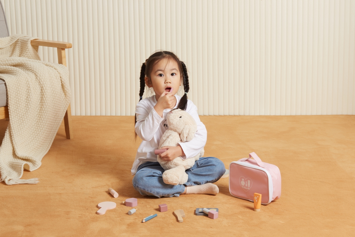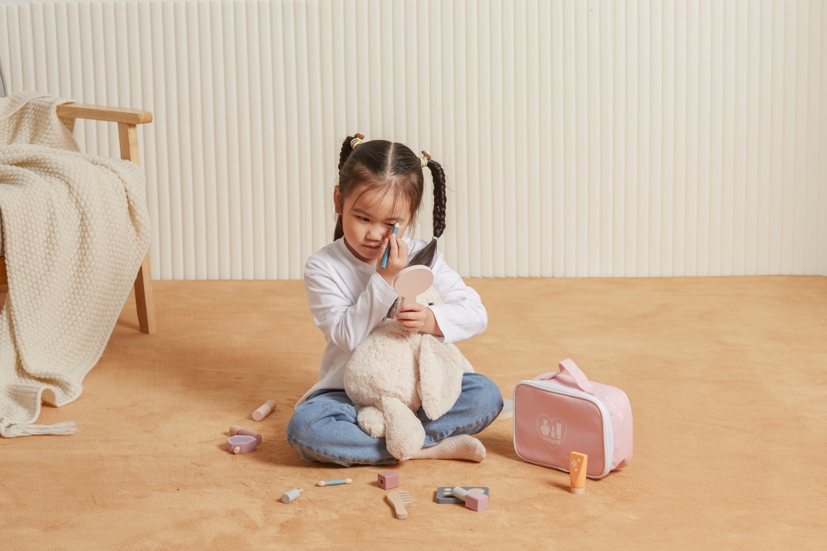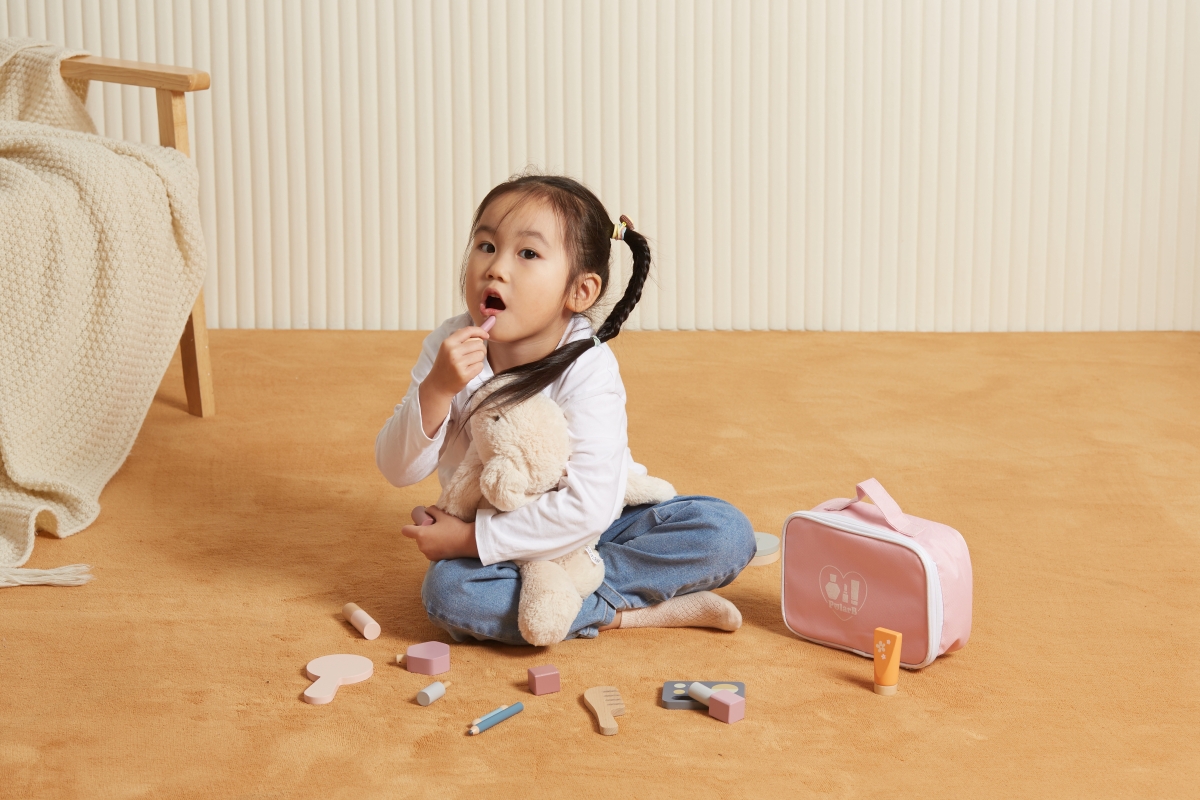Dřevěná sada make-up v látkové brašně. Obsahuje 13 dílků. Rozměry balení cca 22x15x6,5 cm. Věk 3+..