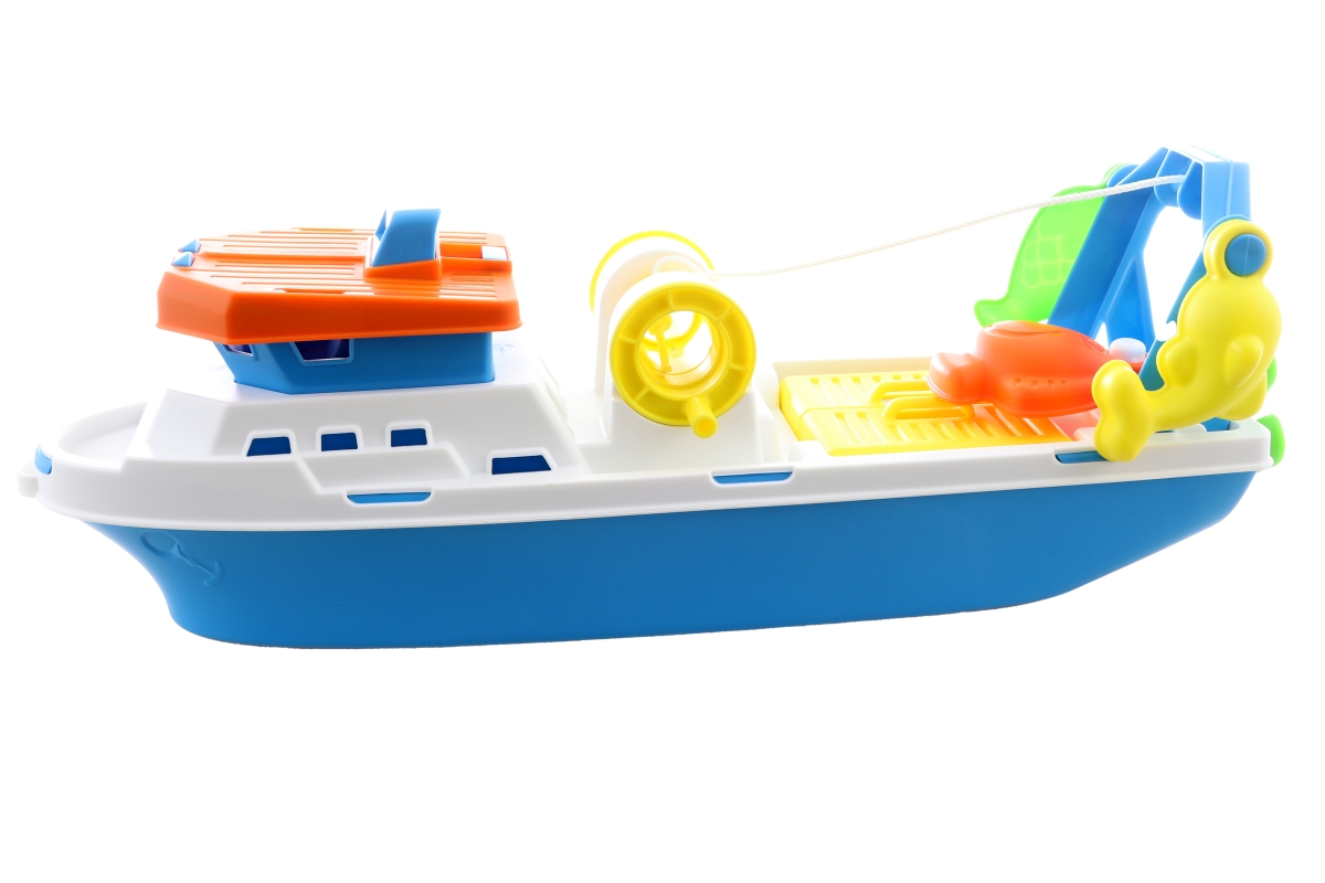 Velká rybářská loď. Materiál plast. Rozměry 40x12x12 cm. Baleno v sáčku. Věk 3+..