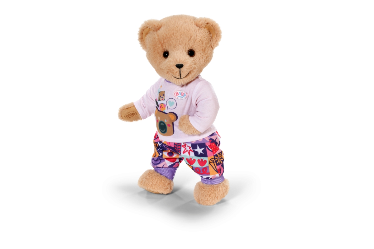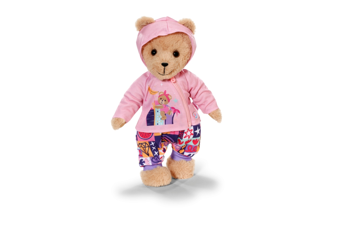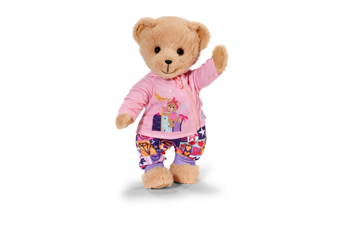 Roztomilý outfit udrží miminko pěkně v teple díky kalhotám s patchworkovým vzorem, světle fialovému tričku s dlouhým rukávem a praktické růžové mikině s kapucí. Obleček pro miminko skládající se z kalhot, trička a bundy. Kalhoty s barevným patchworkovým vzorem. Tričko s dlouhým rukávem ve světle fialové barvě s motivem medvídka. Bunda s kapucí, zipem a ušima medvídka. Velikost 43 cm. Věk 3+