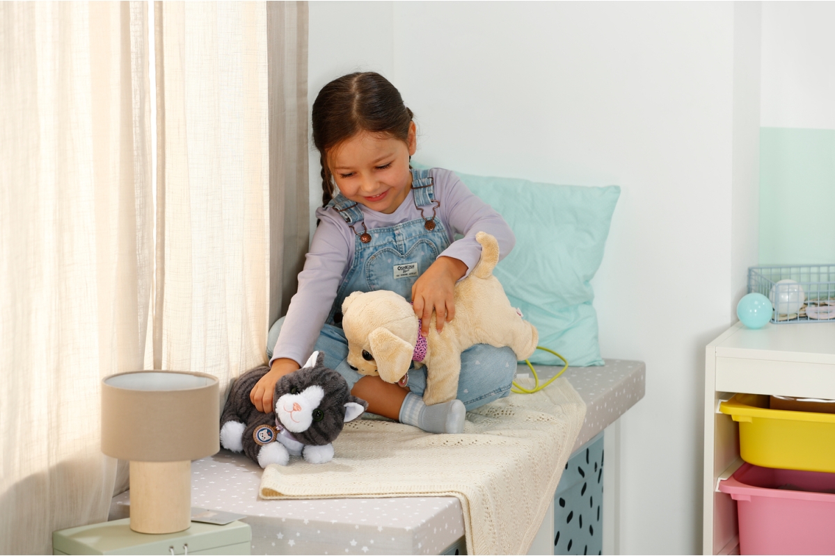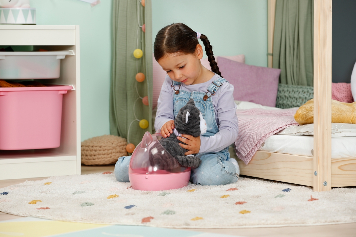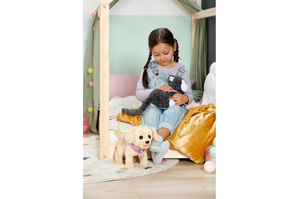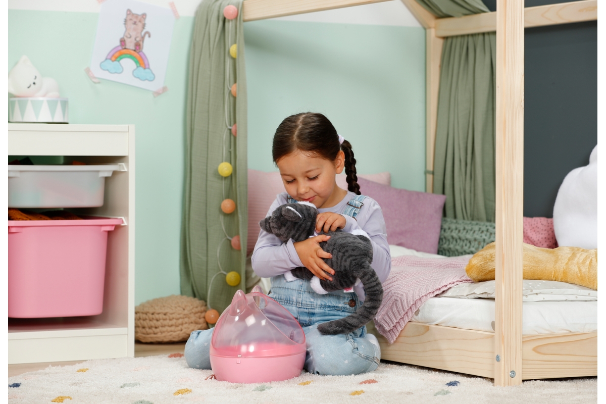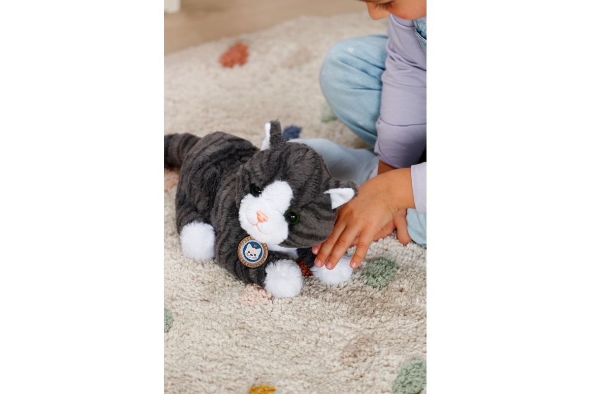 Kočička Cookie s přepravkou je interaktivní hračka určená pro děti od 3 let. Je navržena tak, aby co nejvíce připomínala skutečnou kočku. Při pohlazení po zádech, hlavičce nebo tlapkách začne mňoukat a příst, což je doprovázeno jemnou vibrací, která dodává hraní autentičnost. Kočička má měkkou srst, která je příjemná na dotek a ideální k mazlení. Součástí balení je také pelíšek, který slouží zároveň jako přepravka, takže si děti mohou kočičku vzít kamkoliv s sebou. Hračka vyžaduje 3 baterie typu LR03 / AAA, které nejsou součástí balení.
