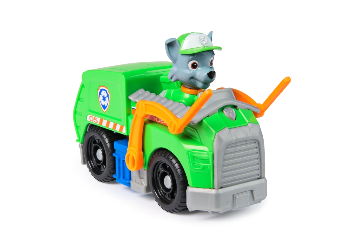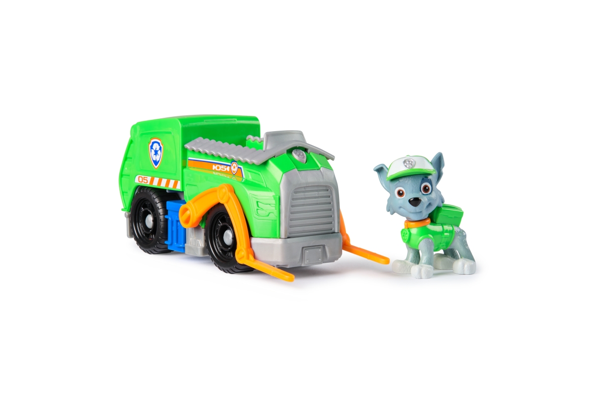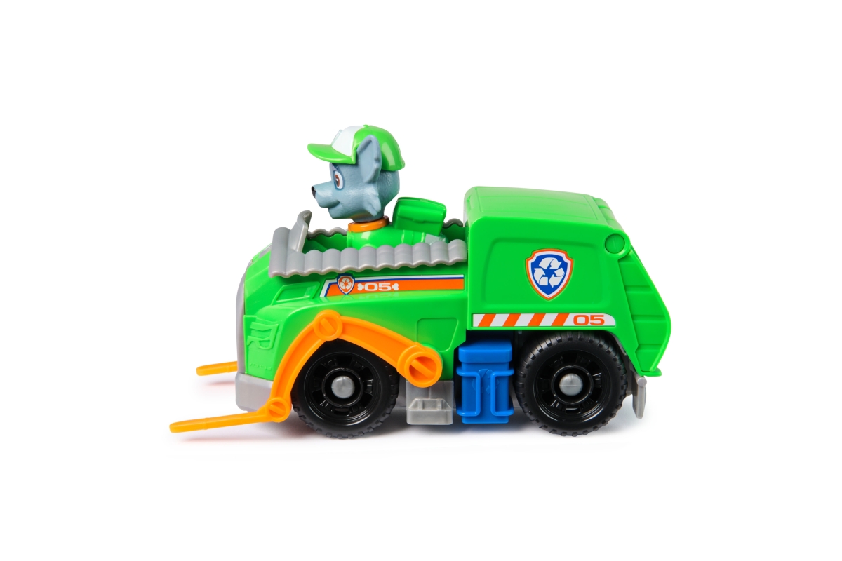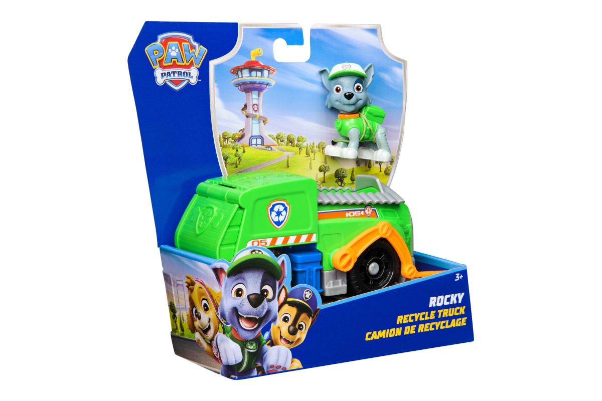 Tlapková patrola vyráží do akce ve svých záchranných vozidlech! Přidejte se k Rockymu na akcí nabité mise s jeho popelářským vozem! Když nastanou potíže, připněte Rockyho nohy na sedadlo řidiče a vyrazte na pomoc se skutečně funkčními koly, pohyblivým vysokozdvižným vozíkem a poklopem! Milované policejní štěně z Tlapkové patroly a jeho vozidlo s autentickými detaily a realistickými prvky přináší úžasnou Tlapkovou patrolu k životu. Rocky a jeho vozidlo jsou vyrobené s ohledem na životní prostředí a jsou minimálně z 80 % z recyklovaného plastu! Spojte se s ostatními tlapkami a jejich záchrannými vozidly (prodávají se zvlášť) a pomozte zachránit den v Adventure Bay! Hračky Tlapková patrola pro předškoláky a vzdělávací hračky pro batolata jsou dárky pro děti, které jsou fanoušky seriálu, podporují nápaditost při hraní a vylepšují jemné motorické dovednosti. Hrdinové z Tlapkové patroly a k nim patřící autíčka vám umožní znovu prožít vaše oblíbené okamžiky z různých dobrodružství Tlapkové patroly, jako jsou Mocné tlapky a Tlapková patrola ve filmu, nebo si vytvořit svá vlastní dobrodružství (prodávají se zvlášť). Užijte si dlouhé hodiny zábavy a vydejte se na dobrodružství inspirované seriálem Tlapková patrola s kompletními sadami týmu akčních štěňat a leteckých záchranářů, které zahrnují vozidla Tlapkové patroly, akční figurky a hračky pro batolata!