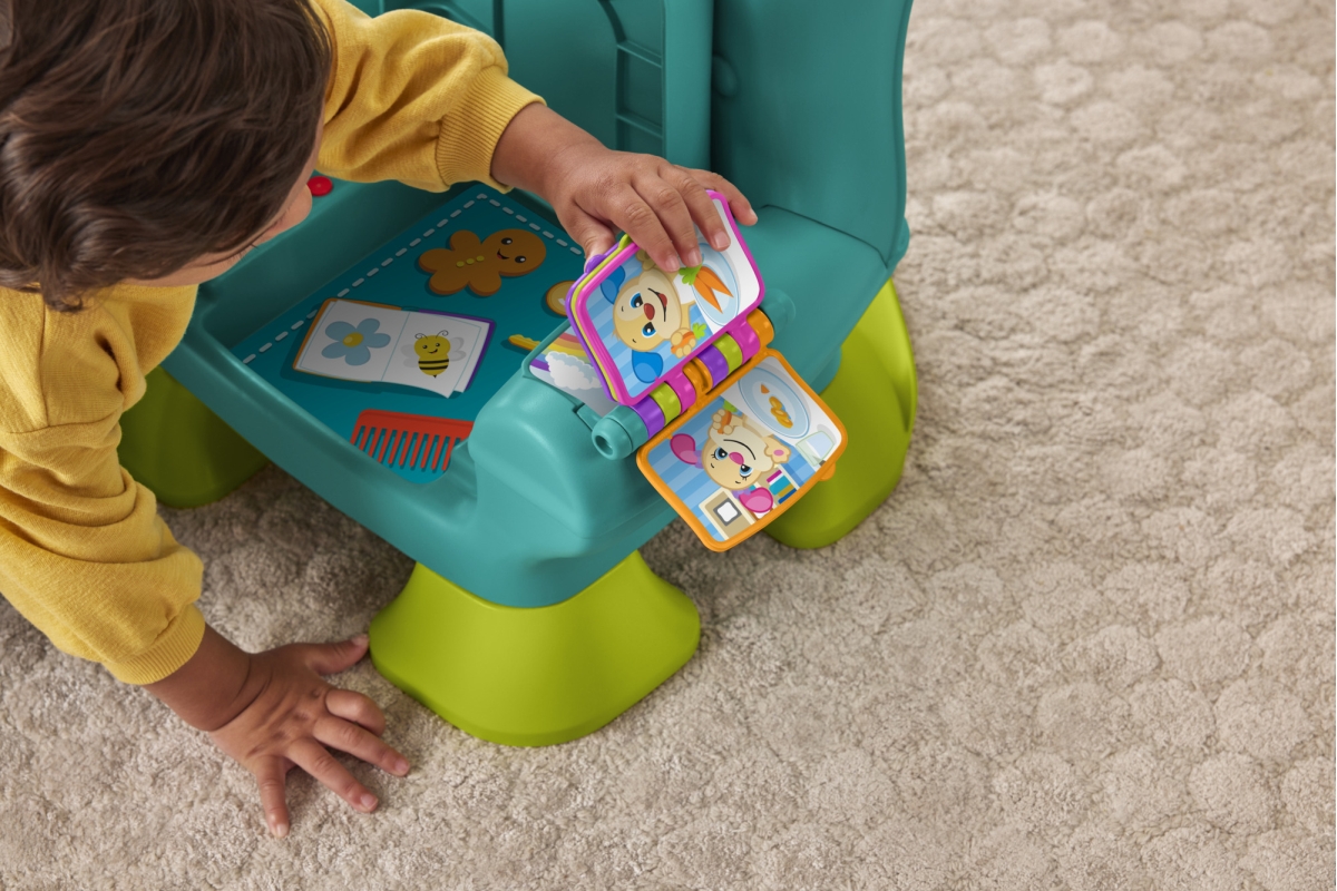 Křesílko Smart Stages™ od Fisher-Price® představuje pro vaše dítě útulné místo, kde si může hrát a objevovat svět. Interaktivní křesílko pozná, kdy si dítě sedne nebo vstane, a může na to reagovat zábavnými písničkami a frázemi! Jakmile se do něho děťátko posadí, čeká na něj spousta zábavných aktivit, včetně svítícího dálkového ovladače s tlačítky s čísly a tvary, listovací knížky a nadzvedávajícího polštářku se skrytými překvapeními. Tři úrovně učení Smart Stages™ obsahují více než 120 písniček, zvuků a frází, které dětem při hře představují barvy, tvary, čísla, počítání a protiklady. Pomocí tlačítka zeměkoule si můžete vybrat jazyk: polština, maďarština, čeština, slovenština nebo angličtina. Barvy a provedení se mohou lišit. Věk 12m+