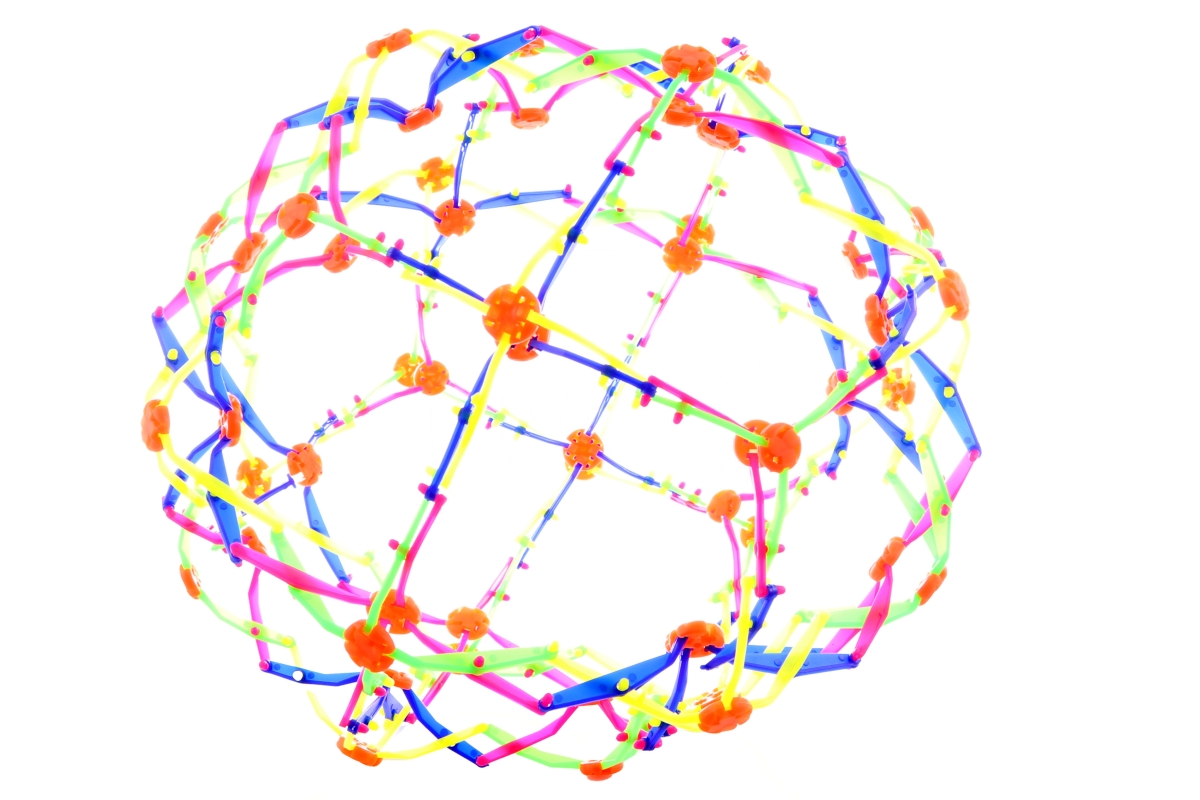 Rokládací míček. Průměr složeného 20 cm, rozloženého 36 cm. Materiál plast. Baleno v sáčku. Věk 3+..