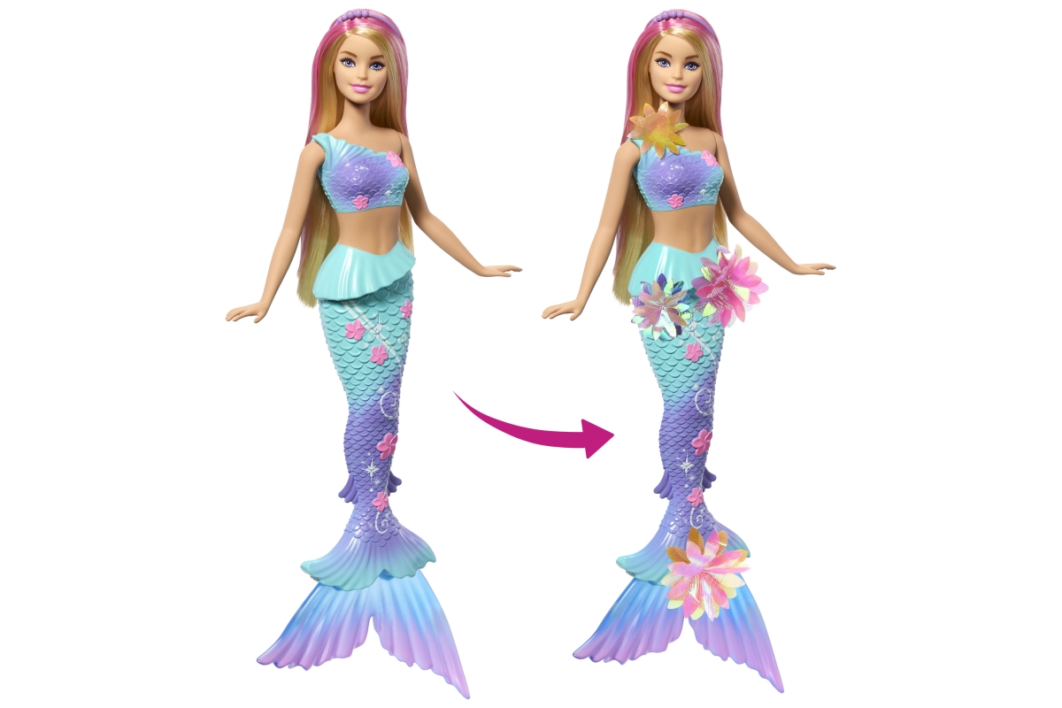 Zažijte zábavu s panenkou Barbie! Posunutím páčky na jejích zádech uvidíte, jak jí květiny kouzelně „rozkvétají“ od živůtku až po její ploutve, a to pořád dokola. Děti si s ní mohou hrát na souši i pod vodou, aby se jim na slunci nebo v moři naskytla nádherná přehlídka květů. S duhovými květy, ombré ploutvemi a doplňkem v podobě perlové čelenky v dlouhých blond vlasech s růžovým melírem - tato panenka Barbie mořská panna je naprosto okouzlující! Panenka nemůže stát ani plavat sama. Barvy a vzhled výrobku se mohou lišit. Věk 3+