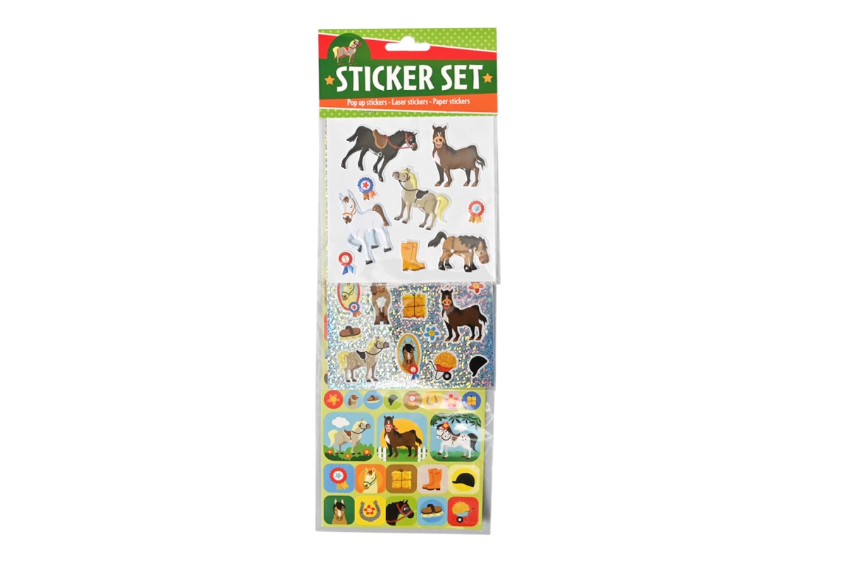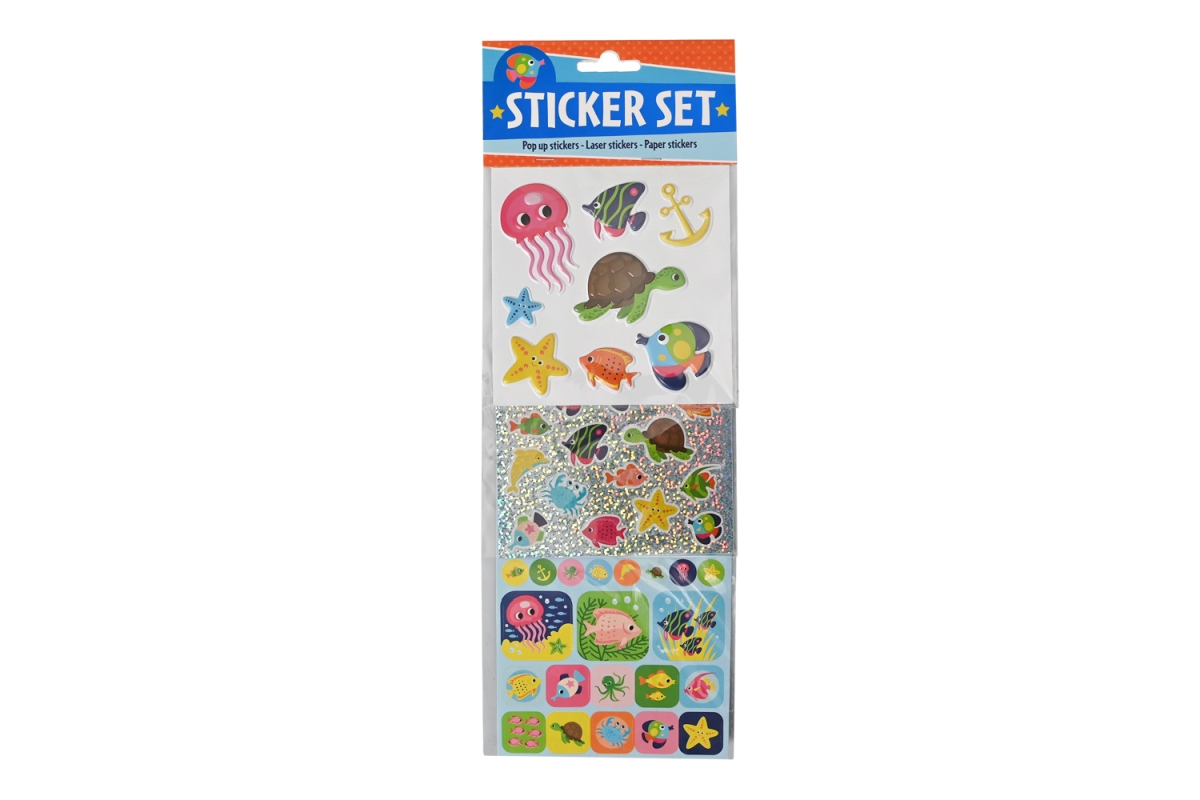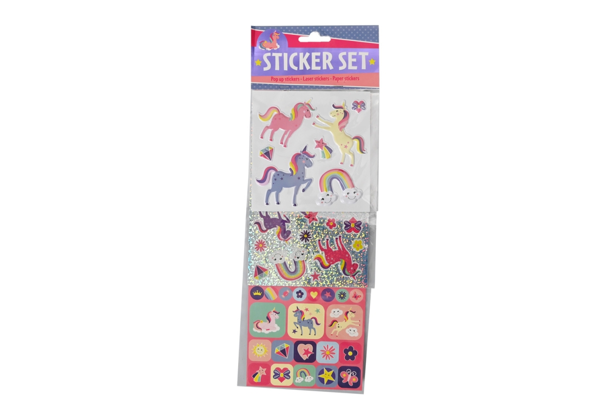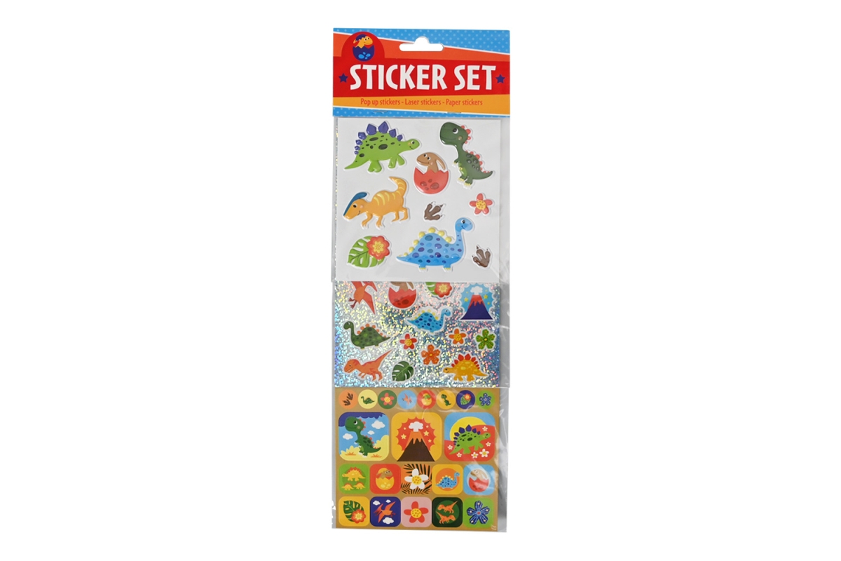 Sada samolepek - 1 arch samolepek různých velikostí a tvarů, 1 arch třpytivývých samolepek a 1 arch 3D samolepek. Rozměry balení 12x34 cm. Věk 3+..