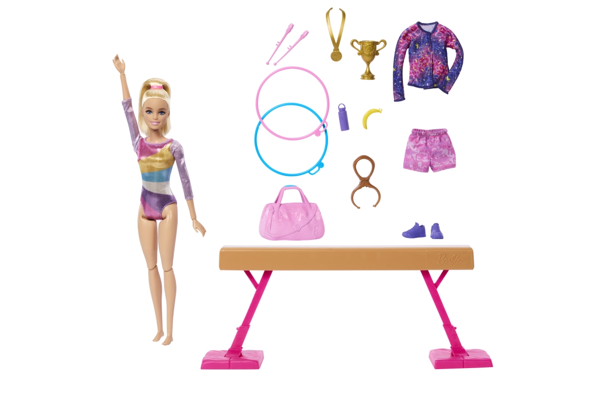 Herní set Barbie® Gymnastka na kladině potěší malé milovnice sportu více než 10 doplňky, zábavnými funkcemi a oblíbenými disciplínami, včetně kladiny,..