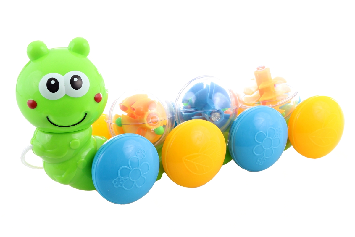 Tahací housenka pro nejmenší. Materiál plast. Baleno v krabici. Rozměry balení cac 28x13x10 cm. Věk 18m+..