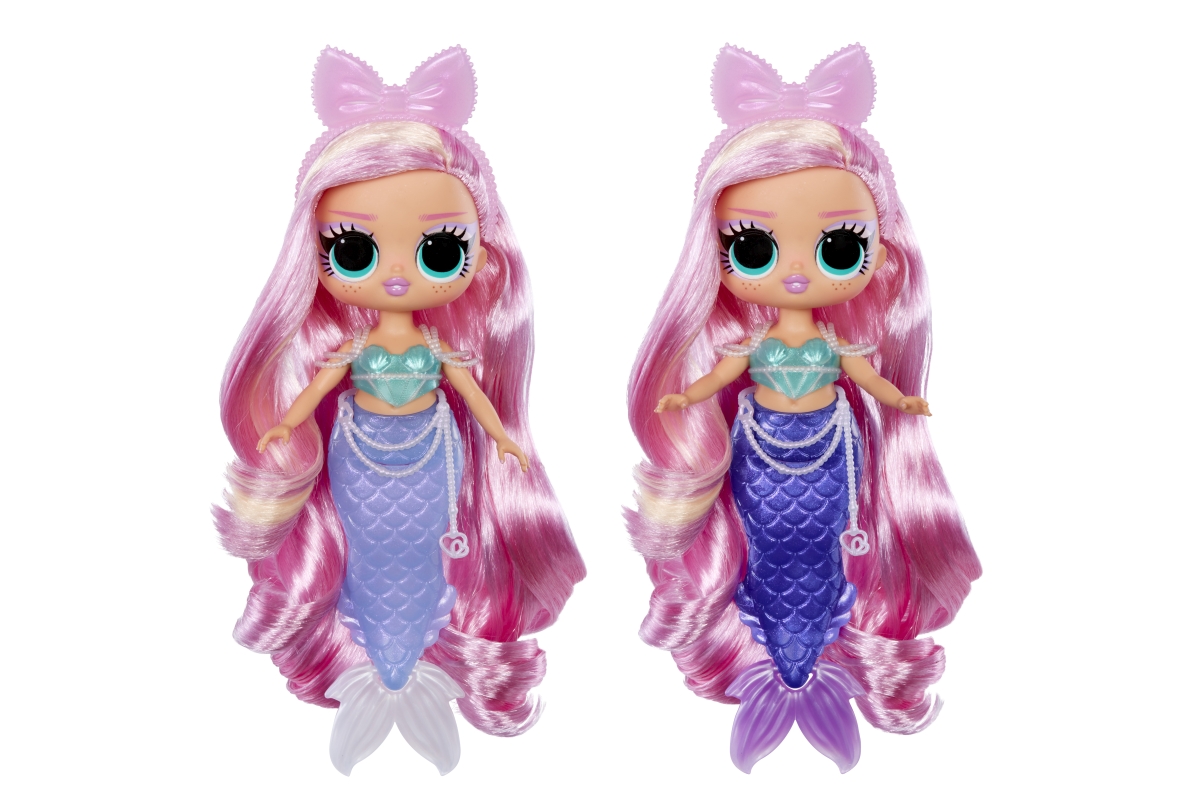 Představujeme 4 nové L.O.L. Surprise! Tweens rošťácké panenky, které se přeměnily na mořské panny s nádherně barevnou ploutví, která mění barvu, když..