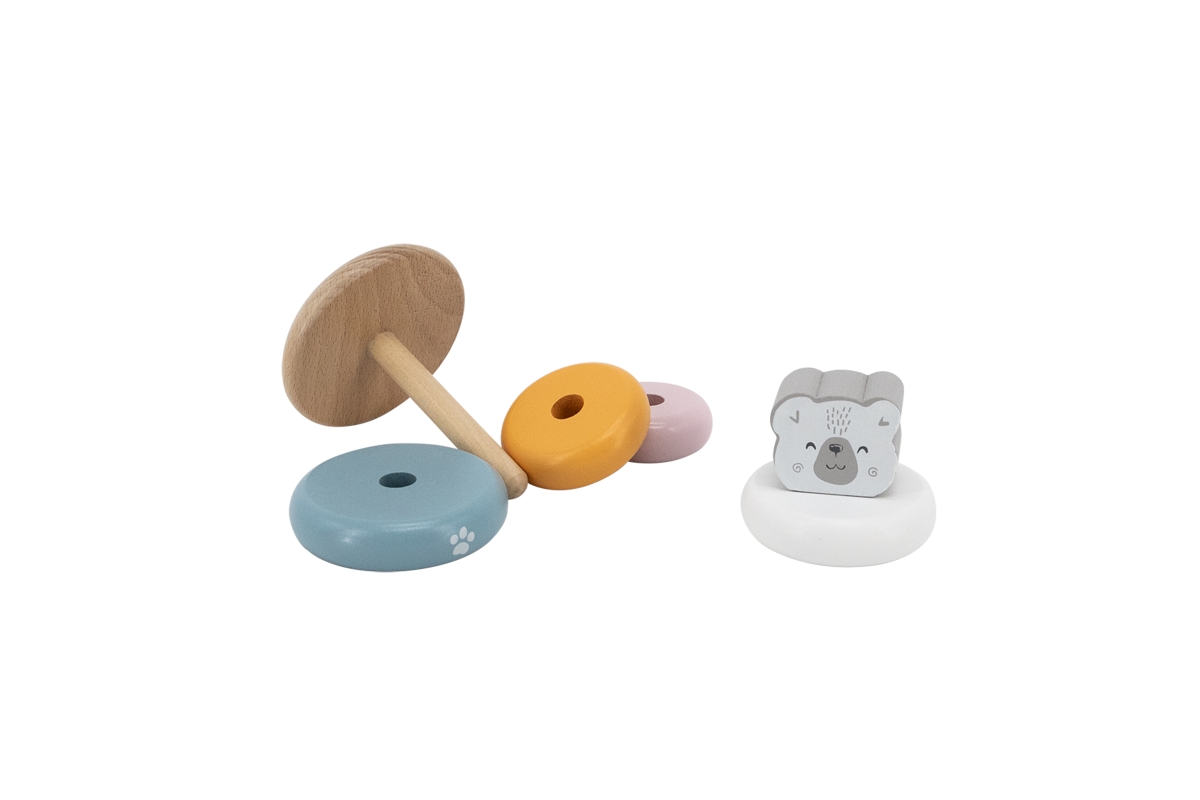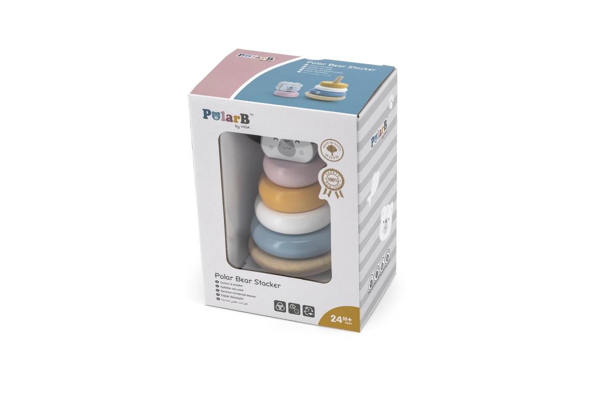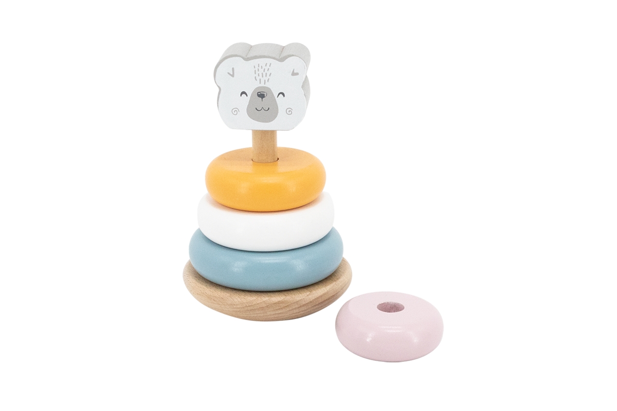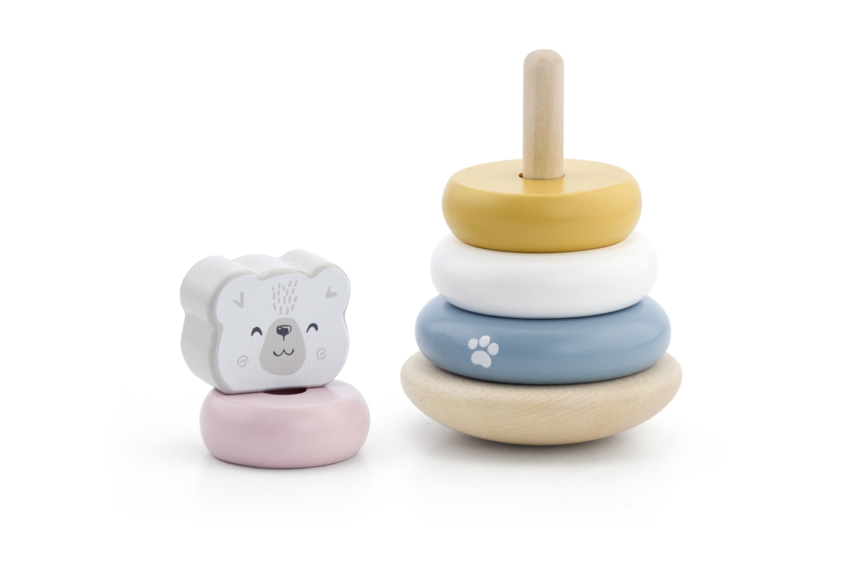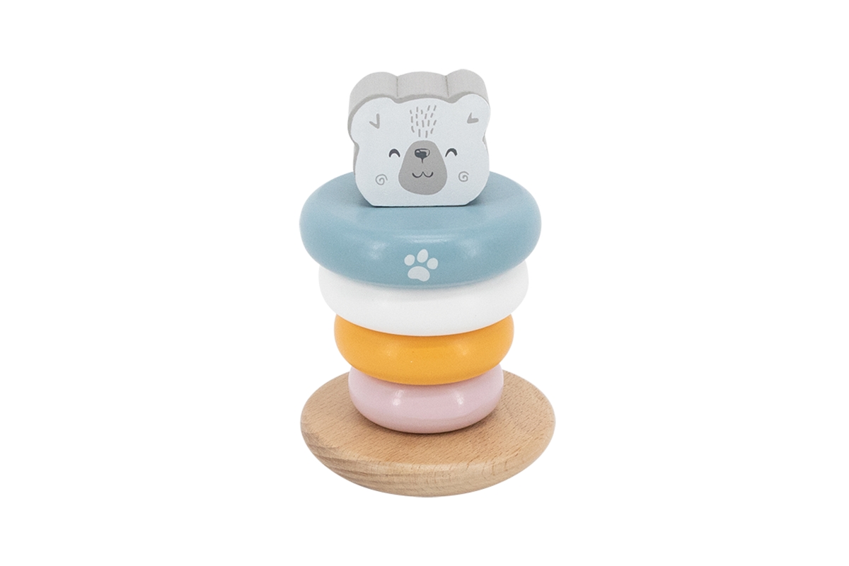 Dřevěné kroužky lední medvěd. Rozměry cca 8 x 8 x 13,5 cm. Rozměry balení cca 12,5 x 18 x 9 cm. Věk 24m+..